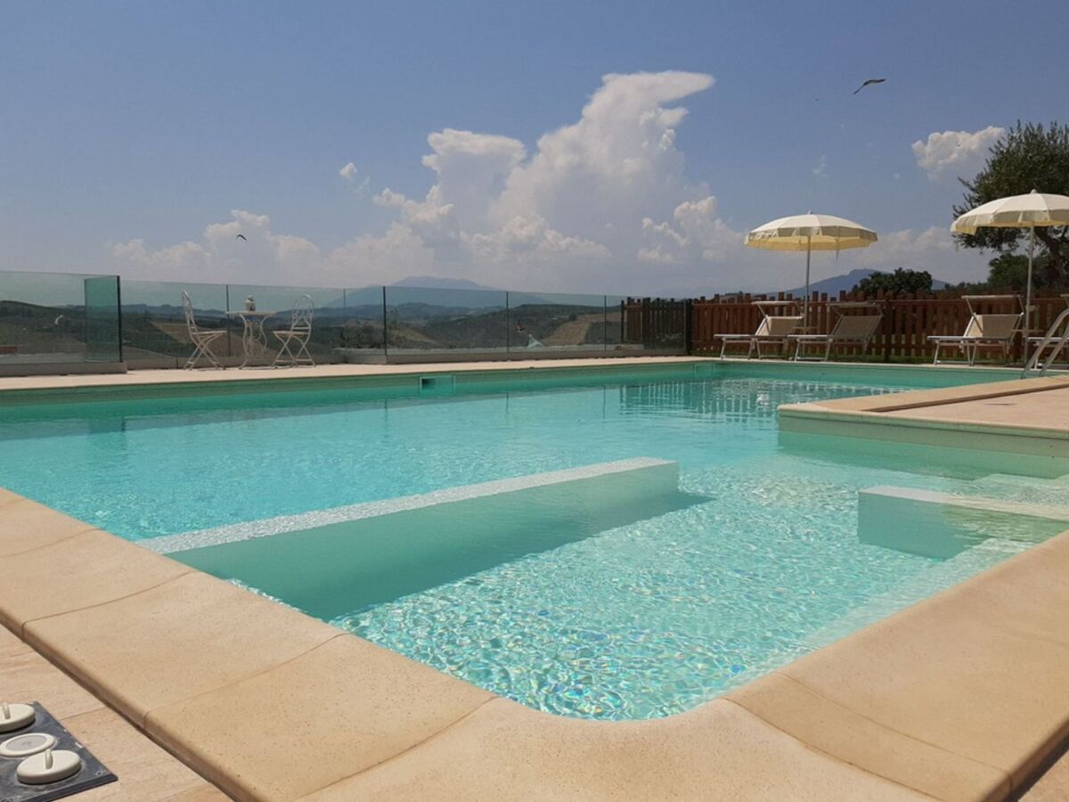 Private swimming pool (9 x 4) with whirlpool and shower - Outdoor games - Laundry room with ironing facilities.Outside eating area with patio, Barbecue, Fridge and wood ovenGround floorLiving/kitchen with TV, Sofa-bed for two people, Wifi, Air conditioning4 Stoves, oven, fridge, espresso machine and kettle1 Double bedded room with air conditioning and ensuite shower room with hairdryer1 Twin bedded room with air conditioning and ensuite shower room with hairdryer1 Shower room with hairdryerFirst floor Living/dining room with TV, wifi, fireplace and fanBig terrace for “dining al fresco” with gazeboSmall kitchen with 3 Stoves, dishwasher, microwave and fridge1 Double bedded room with fan1 Twin bedded room with fan1 Laundry room1 Shower room with hairdyerRocca Montevarmine (Restaurant) 400 metresCarassai (Shop and Restaurants) 4 KmPedaso (Beaches) 19 KmSan Benedetto del Tronto (Beaches) 25 KmPorto San Giorgio (Beaches) 29 KmRipatransone 14 KmMonterubbiano 13 KmFermo 25 KmAscoli Piceno 41 Km