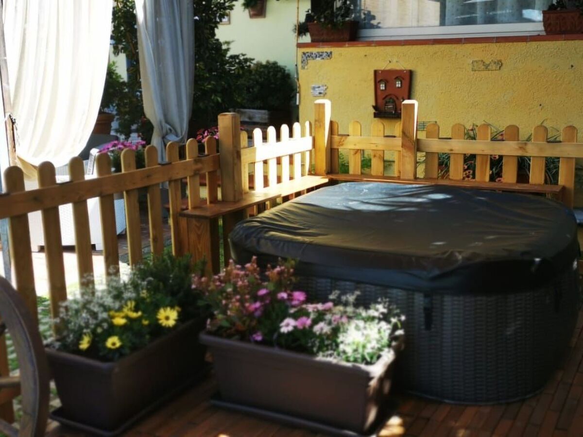 The outside is the real protagonist: a swimming pool for your exclusive use awaits you for moments of pure relaxation and enjoyment, an outdoor Jacuzzi for four people for relaxation, a loggia with outdoor lounge and above all a table for your lunches and dinners with soft lighting.