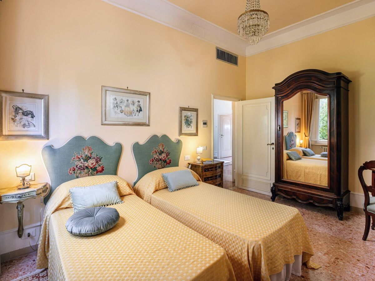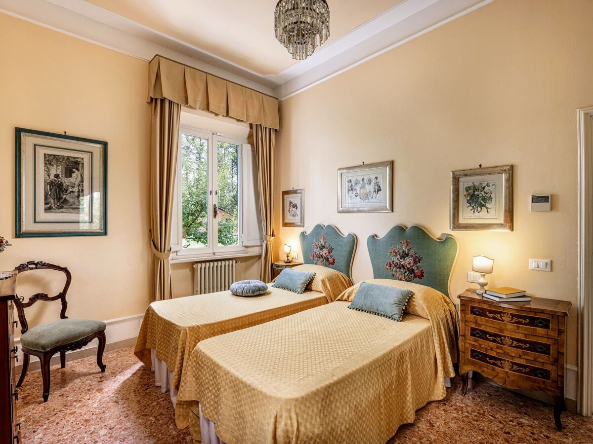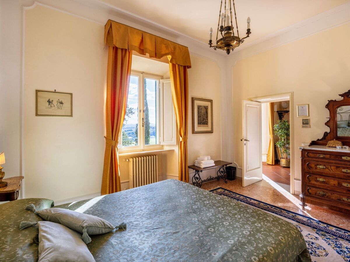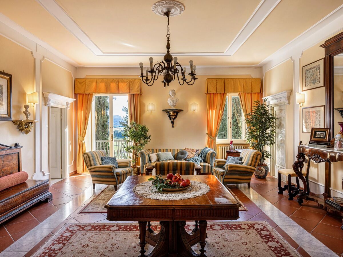 Au premier étage, un deuxième salon confortable avec un balcon privé mène à une collection de chambres, chacune avec sa propre salle de bains, meublées avec un goût exquis et la chaleur que seule une villa toscane peut offrir.