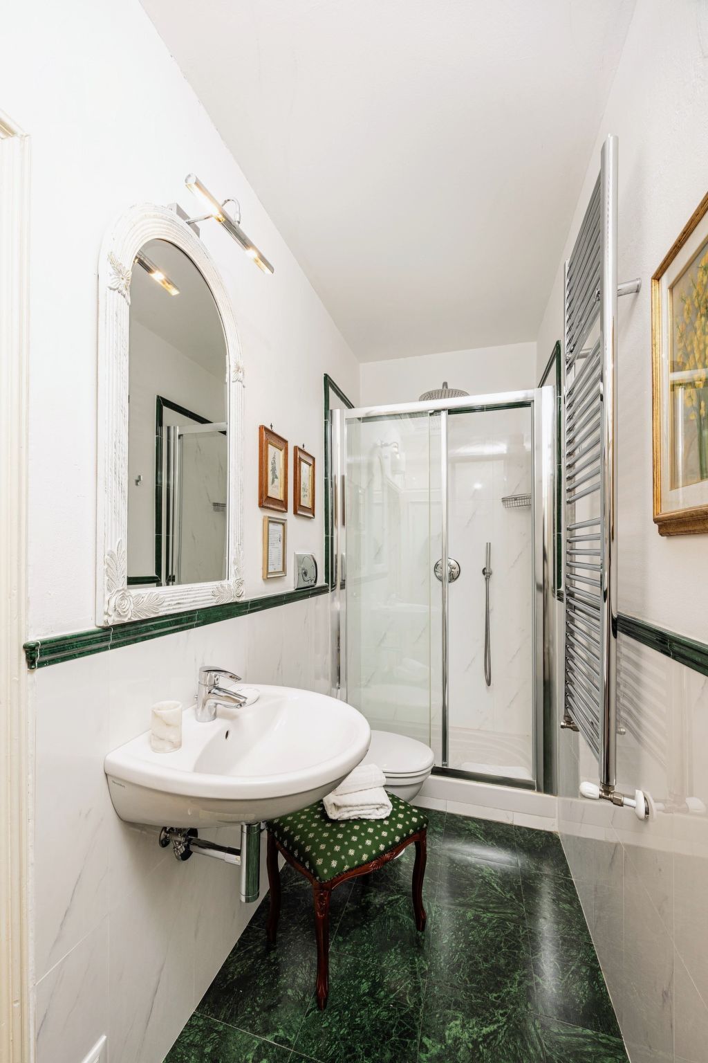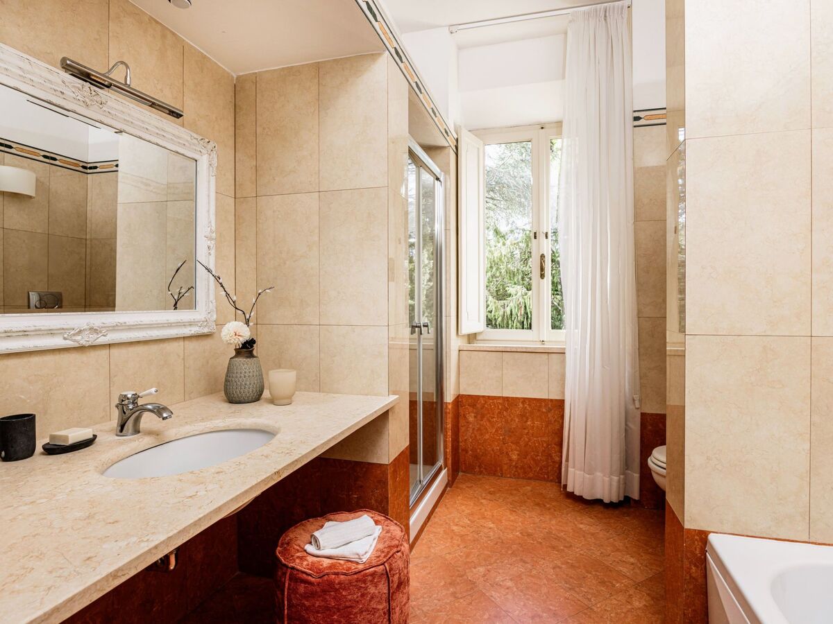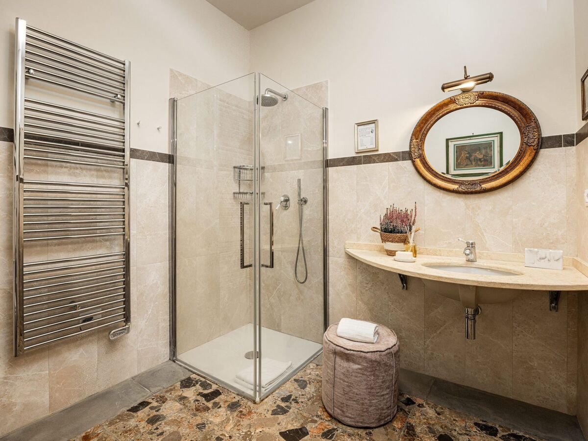 Au premier étage, un deuxième salon confortable avec un balcon privé mène à une collection de chambres, chacune avec sa propre salle de bains, meublées avec un goût exquis et la chaleur que seule une villa toscane peut offrir.