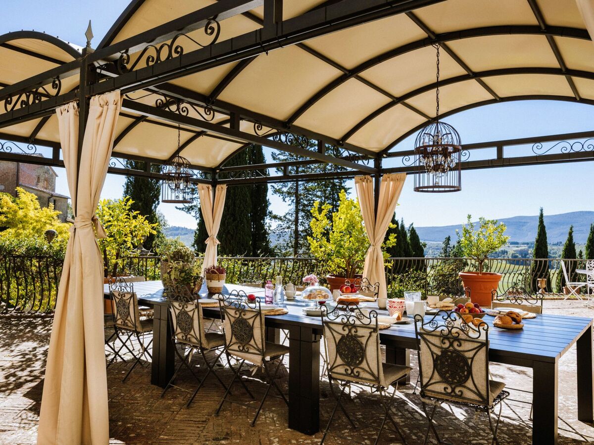 Une charmante terrasse ombragée par un beau gazebo et bordée de citronniers crée le cadre idéal pour les dîners en plein air et les longues soirées d'été.
