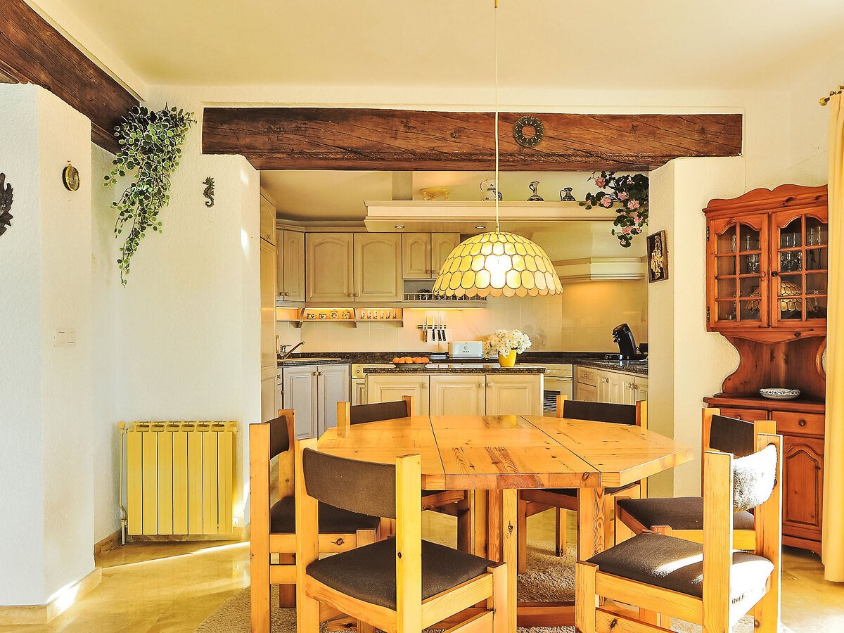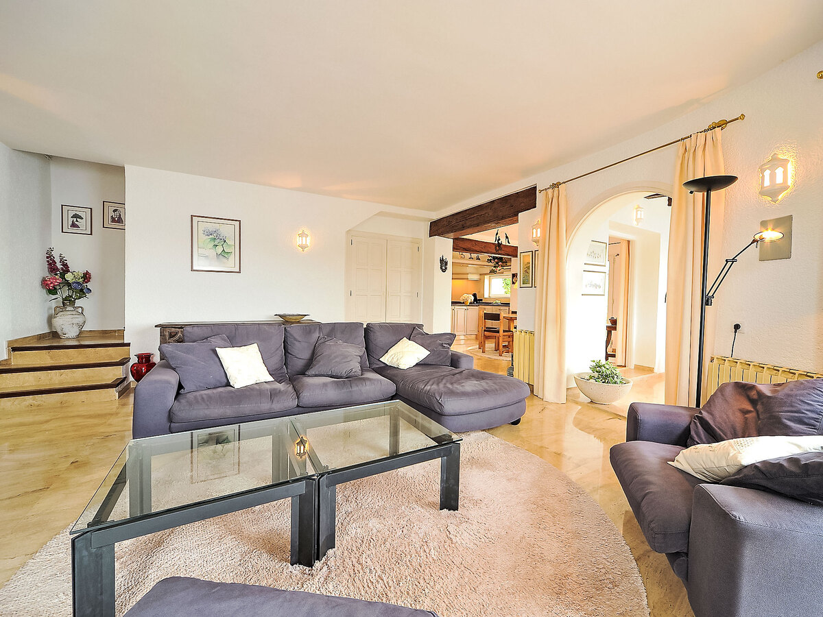 Clair, aménagement très confortable: séjour/salle à manger avec baie vitrée avec cheminée, TV (satellite) et air-conditionné.