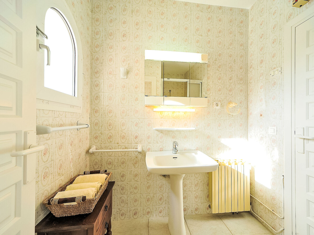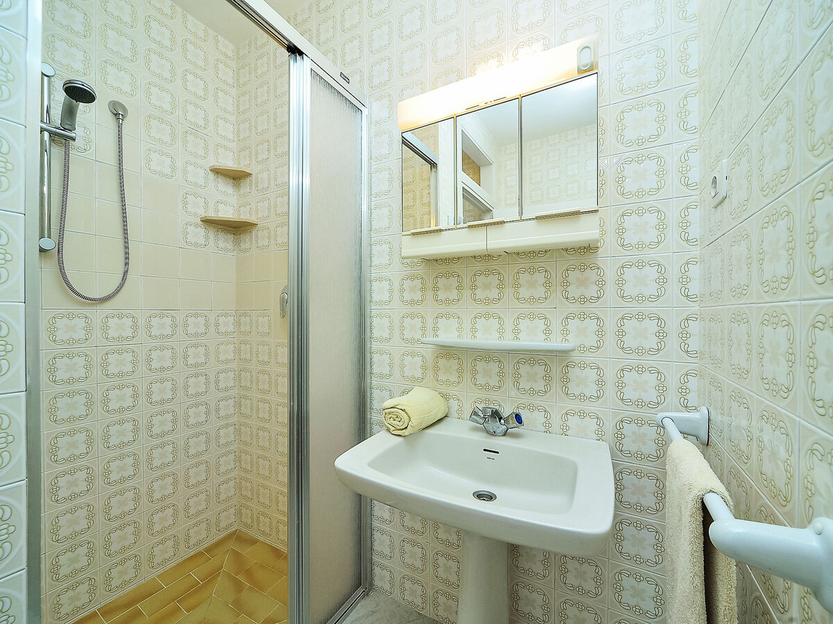 À l'étage inférieur: (escalier extérieur) 1 chambre avec 2 lits (90 cm, longueur 200 cm), douche/WC et air-conditionné.
