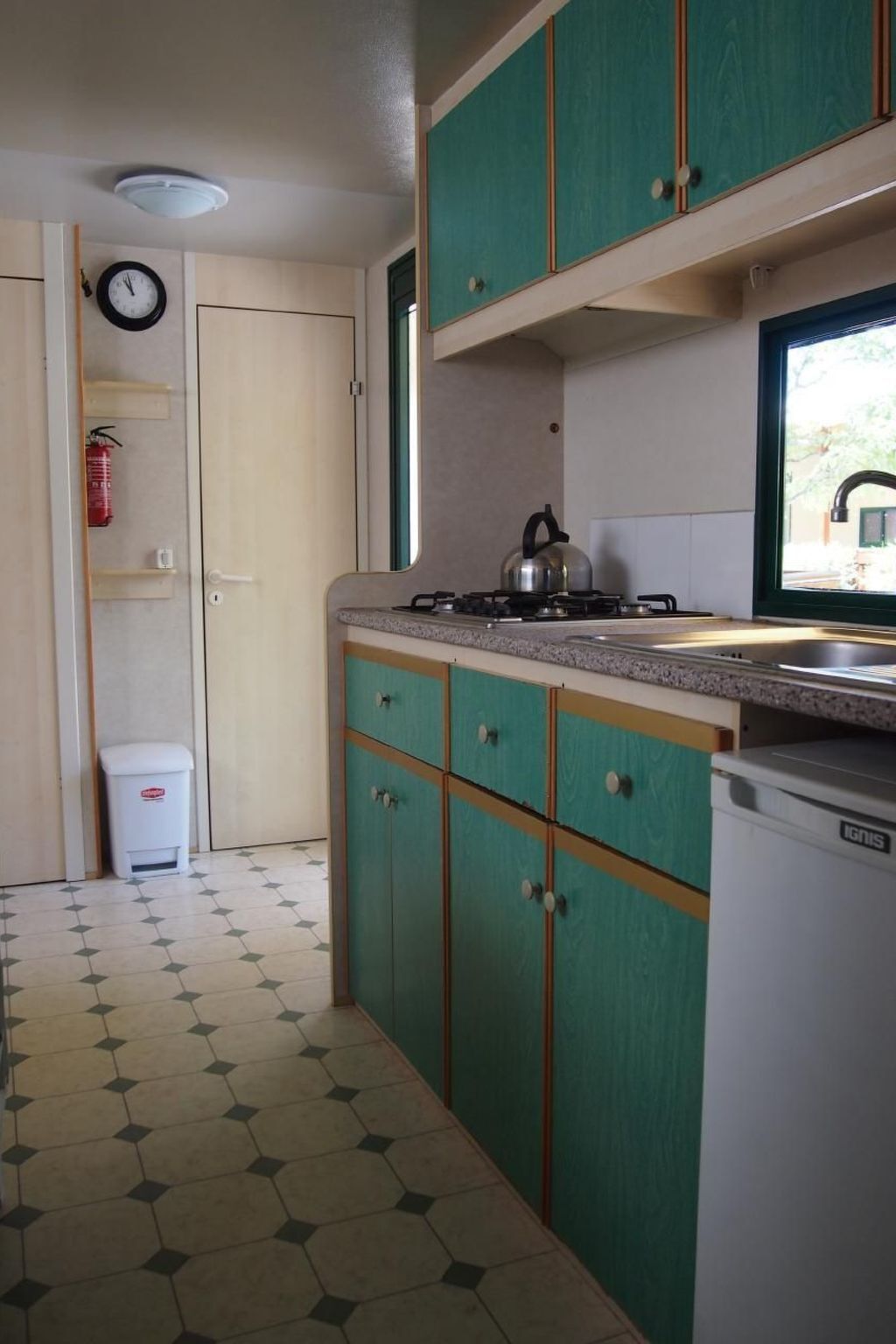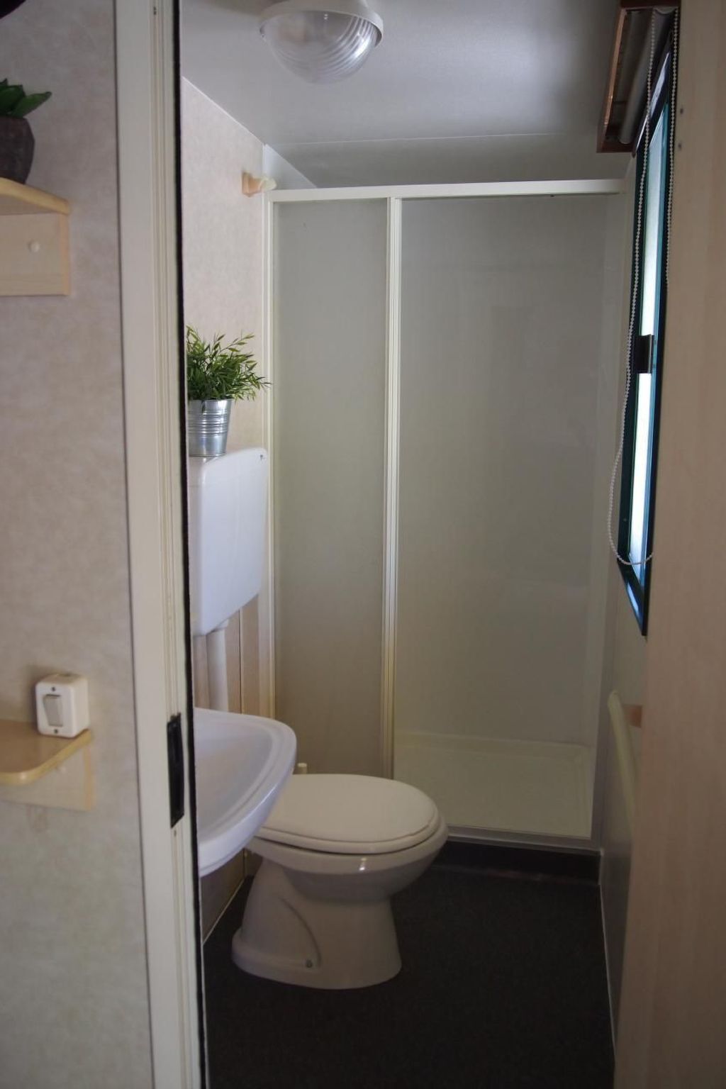 This mobile home is suitable for a maximum of five people.The owner offers four such mobile homes, of which this is a representative description.This mobile home offers you a luxurious interior.The living area provides seating, air conditioning (for a fee) , satellite TV ( only on request) and a DVD player.The open kitchen includes a fridge, a Senseo coffee machine, a microwave, a gas stove, a toaster and a kettle.There is a bedroom with a double bed, and a second bedroom with a single bed and a bunk bed for two people.The bathroom has a shower, a washbasin and a toilet.