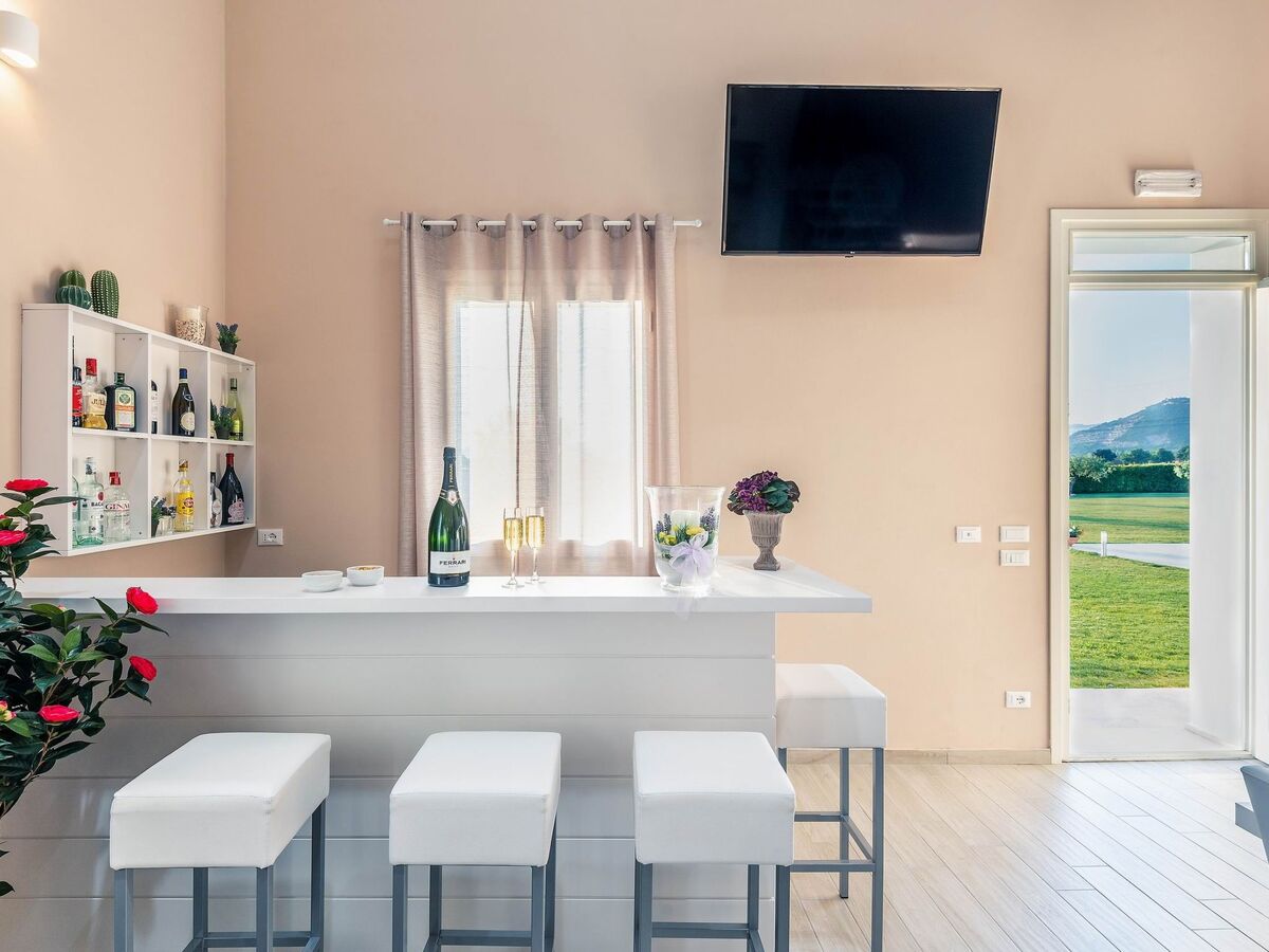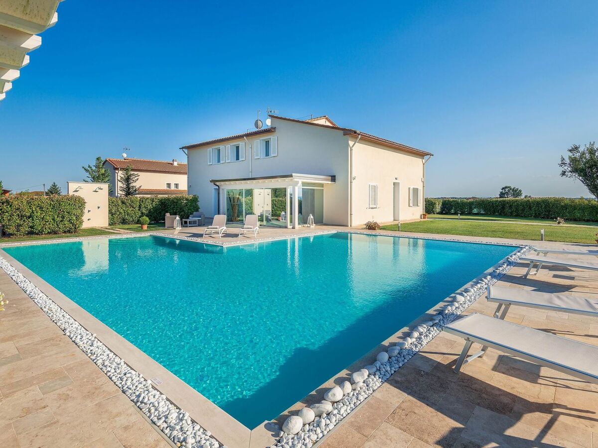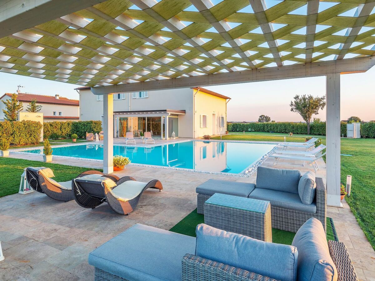 The villa is furnished in a modern style, favouring elegant shapes and colours.