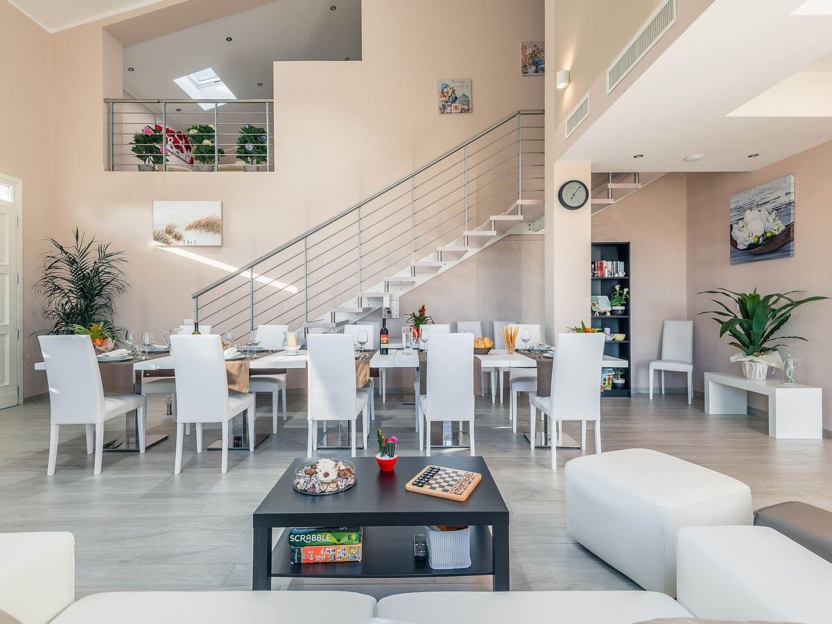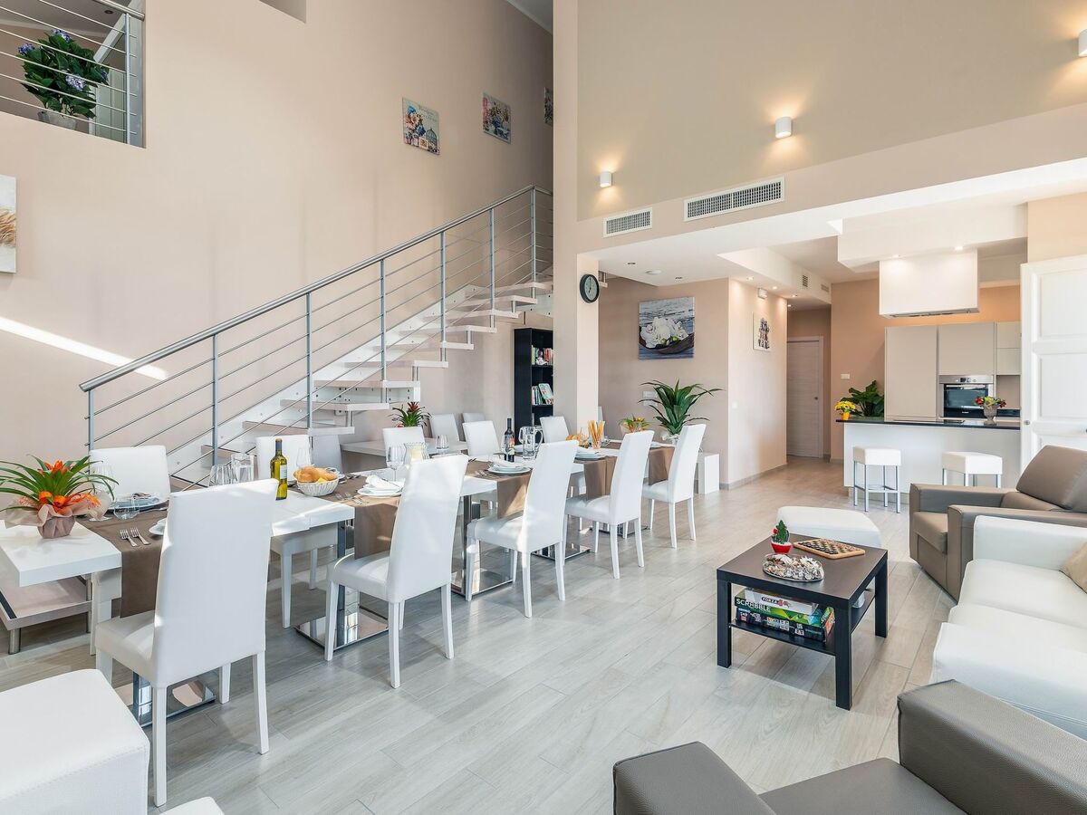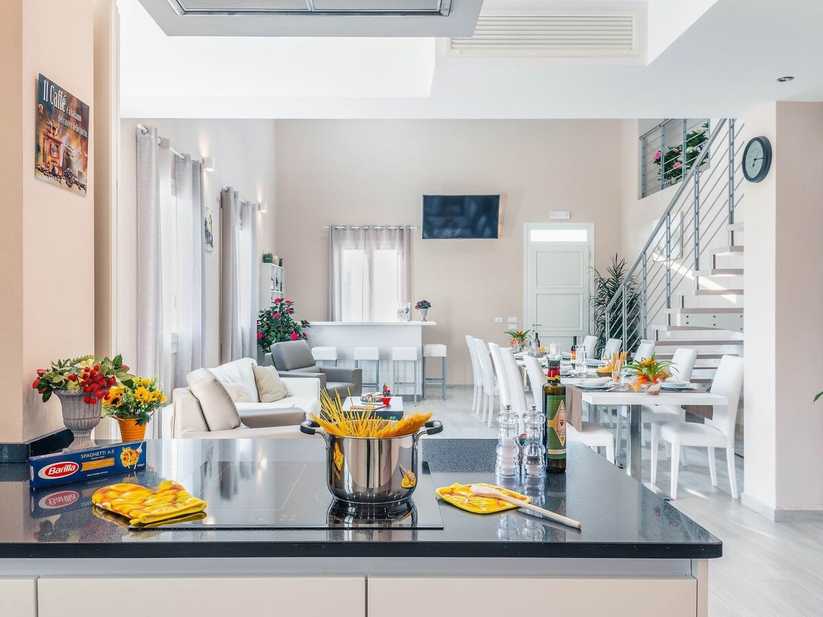 Ground floor: There are various open spaces, divided into a dining area, a well-equipped kitchen (cooker, refrigerator with freezer, oven, dishwasher, microwave, kettle, blender, toaster, American coffee and espresso machine, ice machine), a living room with sofas and satellite TV and stereo system.