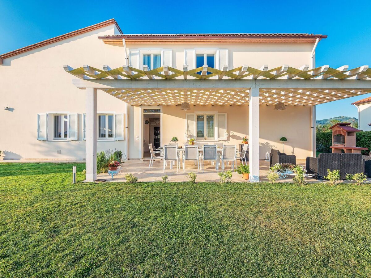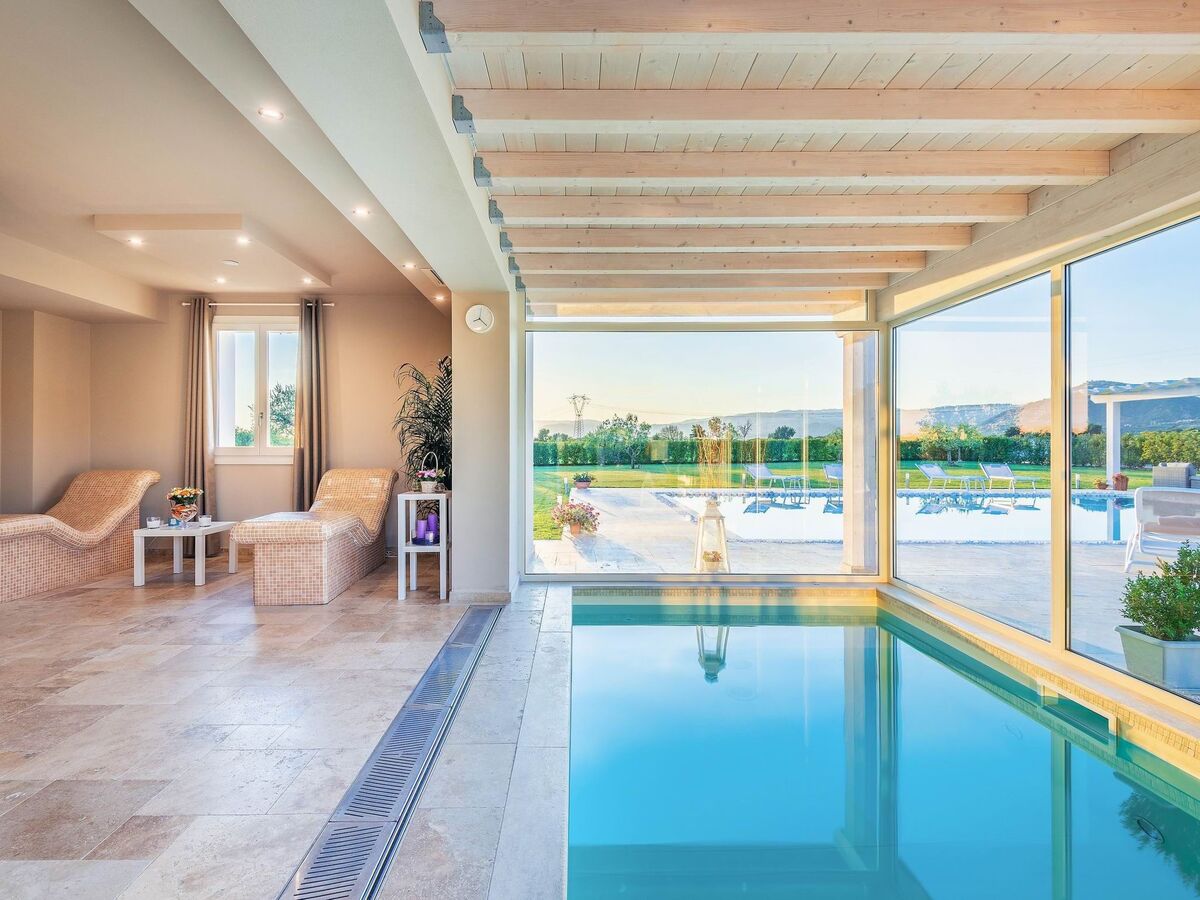 The villa is surrounded by a large, well-kept garden, equipped with a pergola for outdoor lunches and dinners, a barbecue and a relaxation area, next to the large L-shaped swimming pool (11 x 7 m, with an extension of 4 x 5 m).