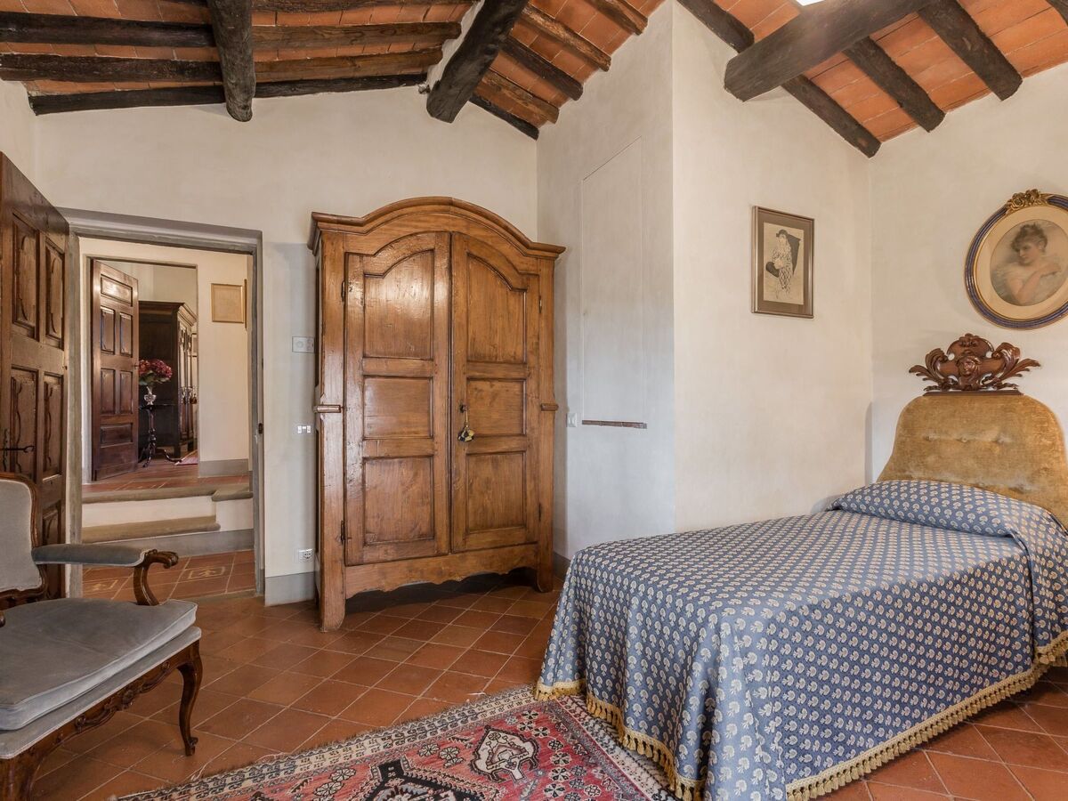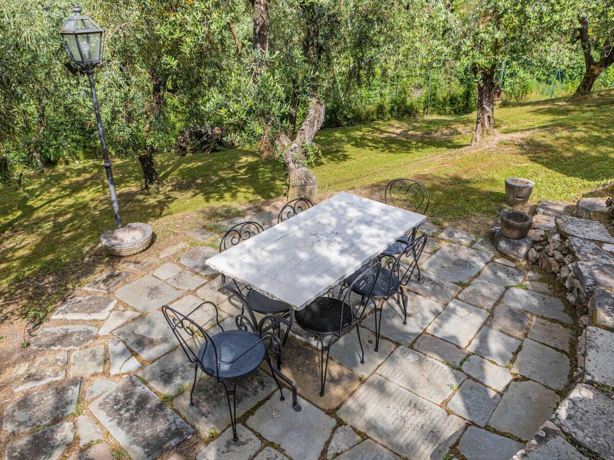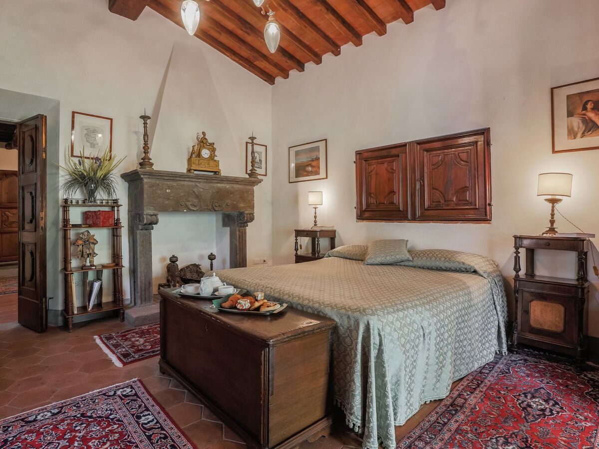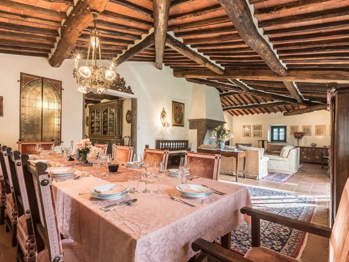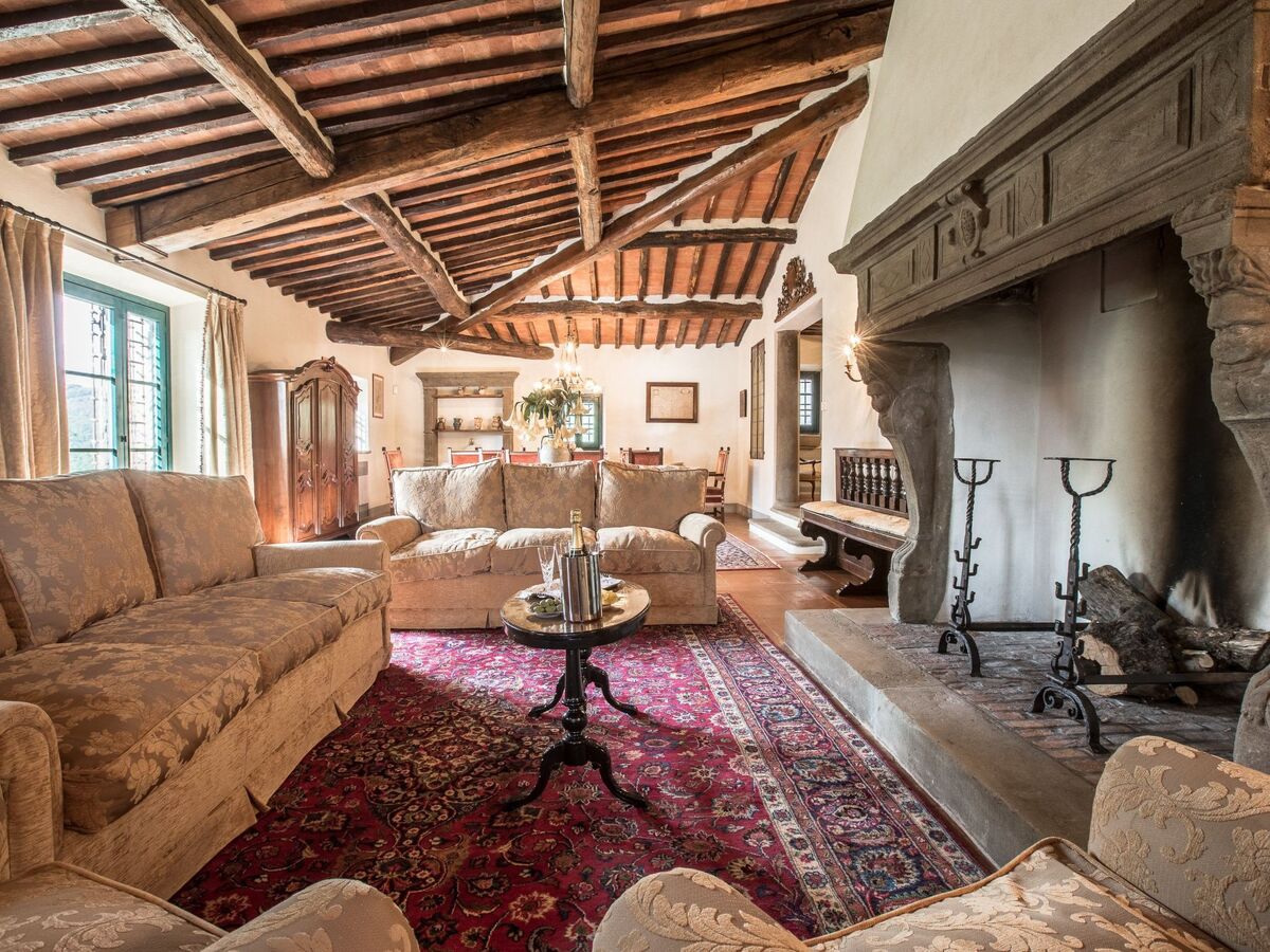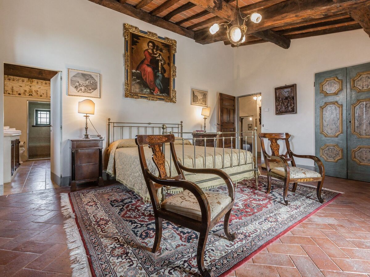 On the ground floor there is a large living-dining room (80 square metres) with a table for 14 and a magnificent 16th century fireplace (not in use), sloping ceilings with wooden beams and French windows overlooking the garden with views of the historic centre of Monsummano Alto; A further living room with satellite TV (Netflix, Bose Bluetooth acoustic speakers) and a double sofa bed and a single bed leads to the large Tuscan kitchen with fireplace (fully equipped with professional hob with 2 ovens, side-by-side refrigerator with icemaker, dishwasher, microwave, Nespresso coffee machine, American coffee machine, moka coffee maker, toaster, blender, juicer), a cast-iron stove with ovens and a French window leading to the veranda suitable for outdoor dining with a table seating 14 a double bedroom with a 17th-century fireplace (not in use) and French doors leading to a covered veranda; a bathroom with a hydro-massage shower; and a laundry room with a washing machine and dryer.