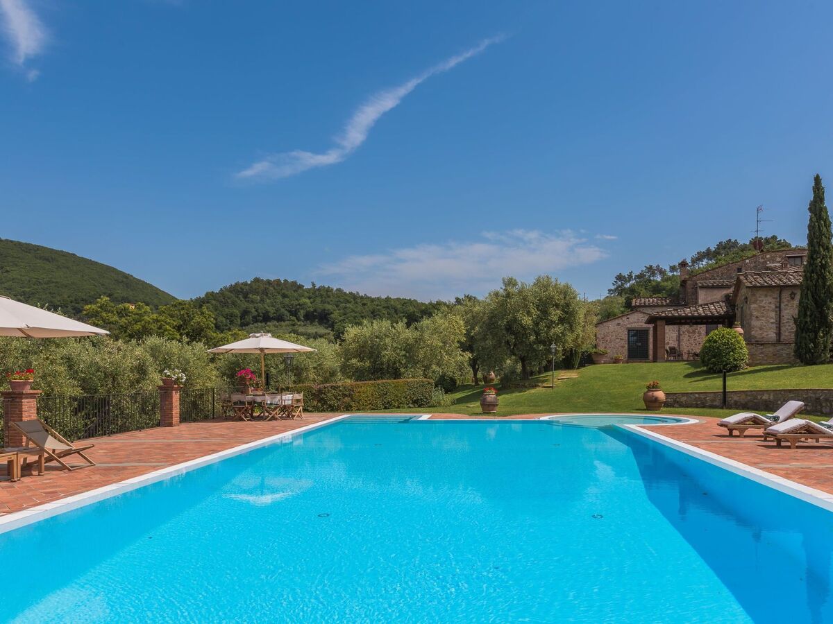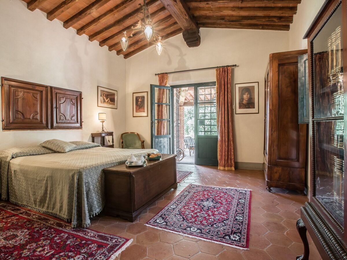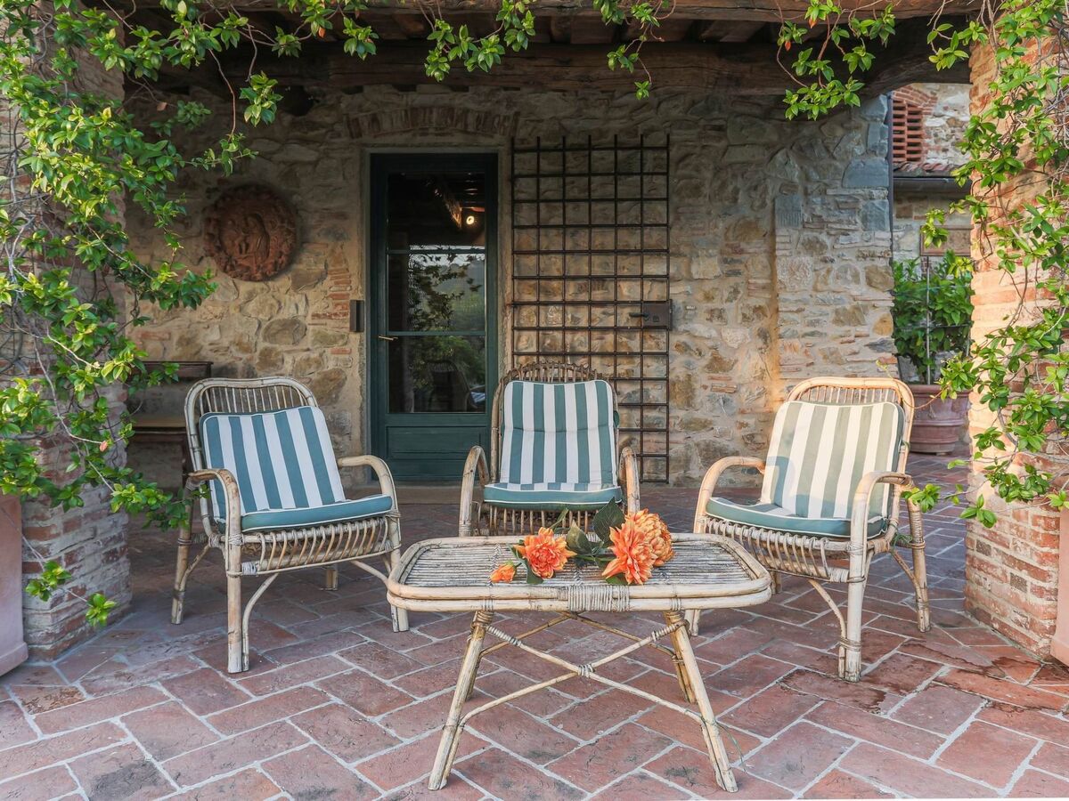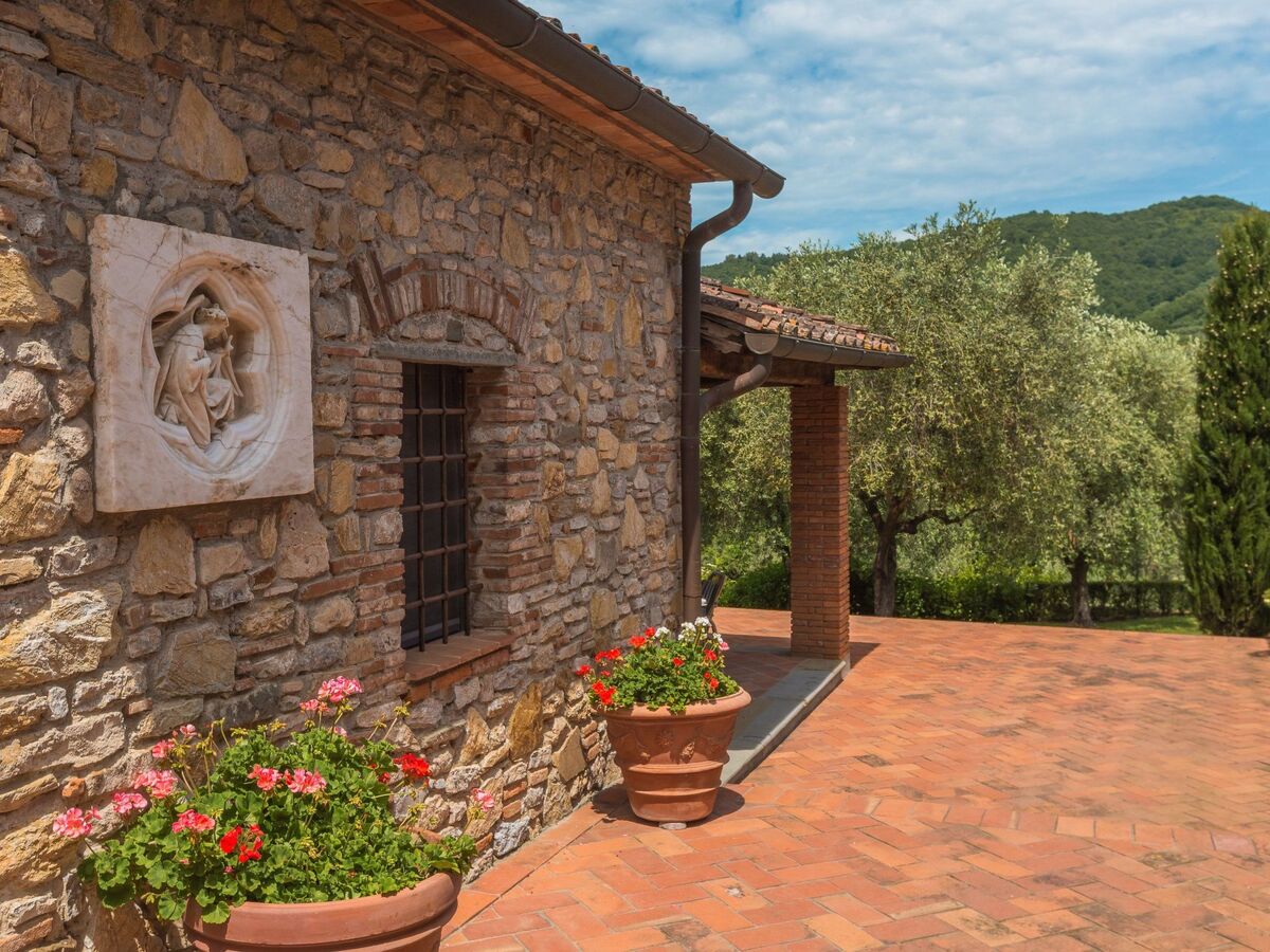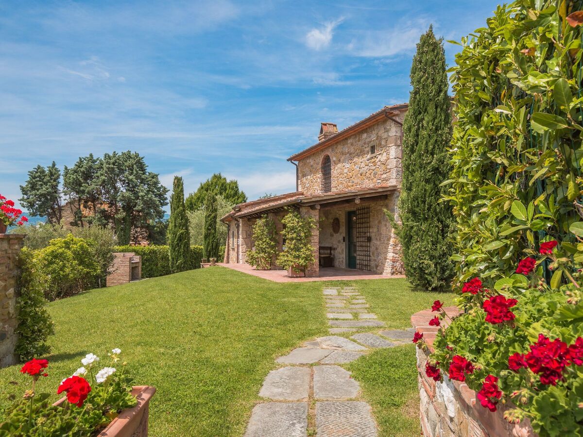 Originally an 18th-century farmhouse built of local stone, the villa is now surrounded by a large garden full of lush plants and beautiful Tuscan terracotta vases.