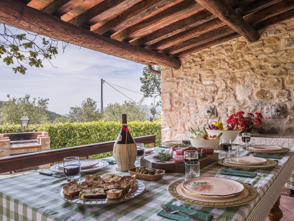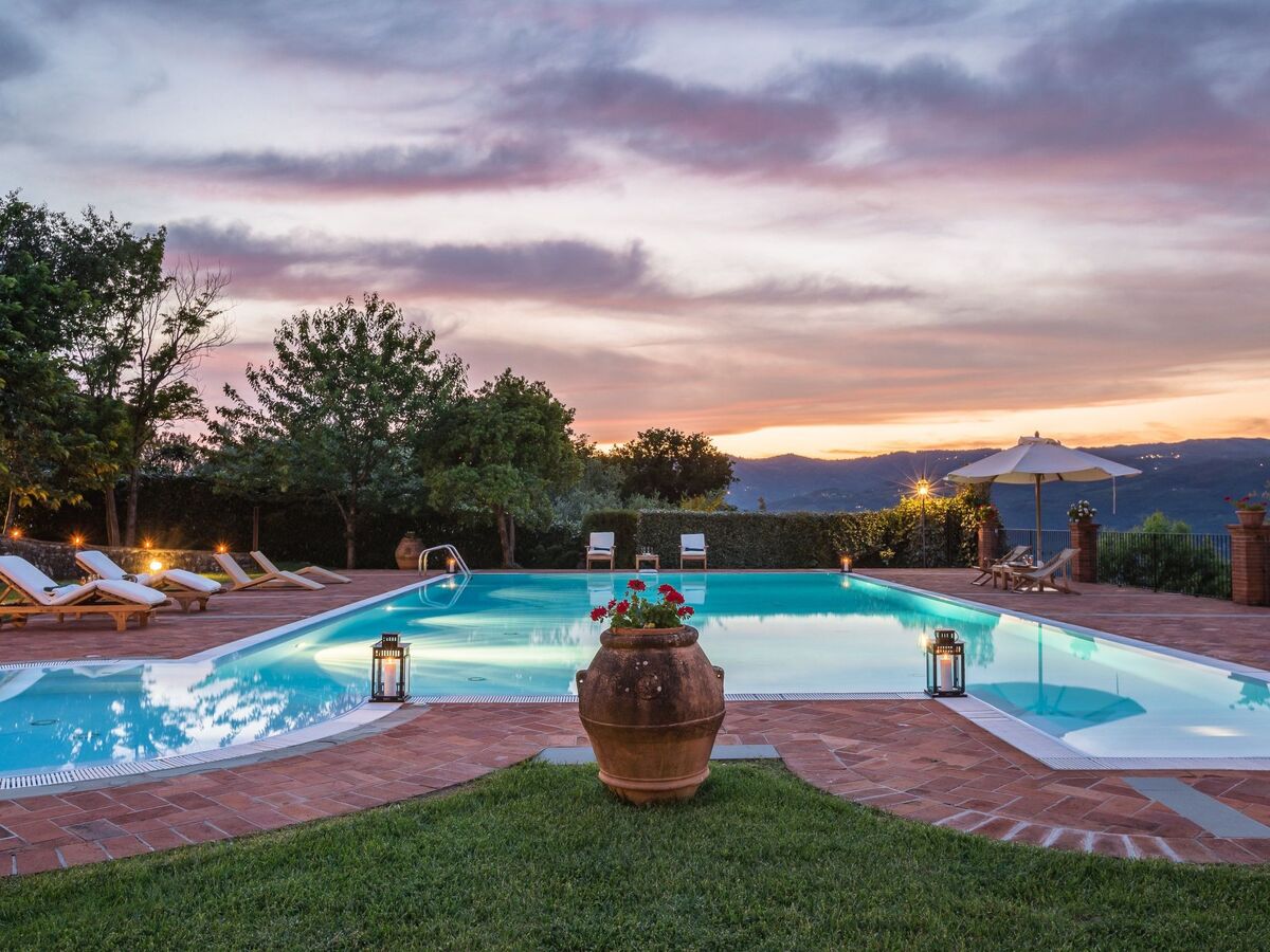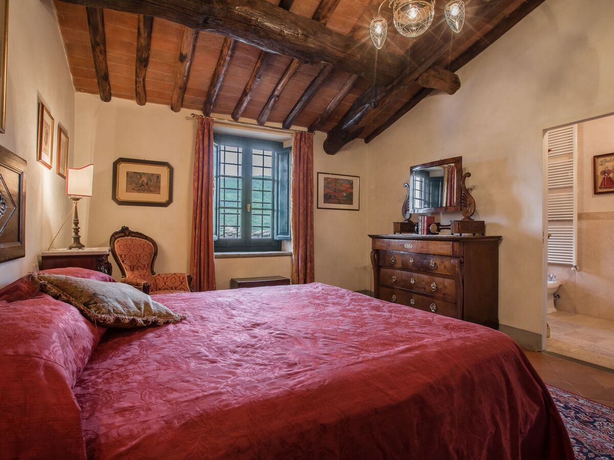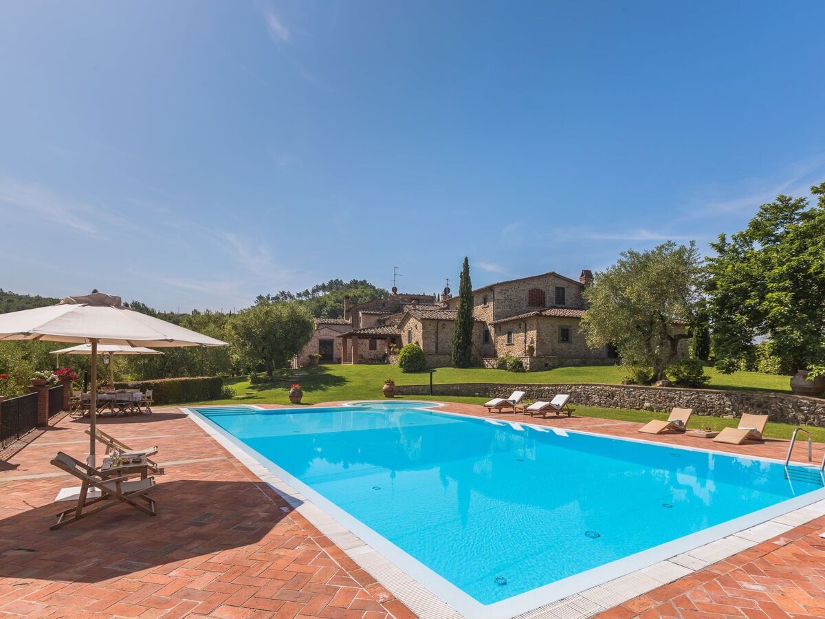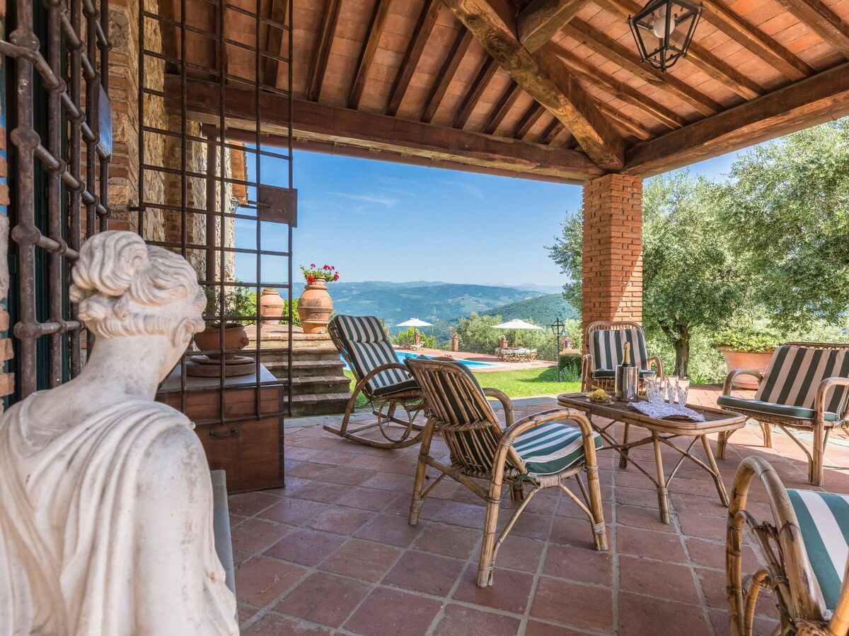 Originally an 18th-century farmhouse built of local stone, the villa is now surrounded by a large garden full of lush plants and beautiful Tuscan terracotta vases.