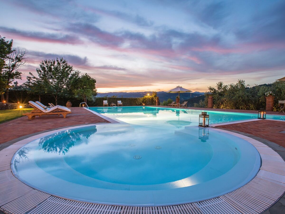 In a picturesque position with a wide view of the surrounding countryside, there is an infinity pool (16 x 8 m, depth from 1.35 to 2.50 m, open from mid-April to mid-October) with a very large whirlpool area for 8 people.
