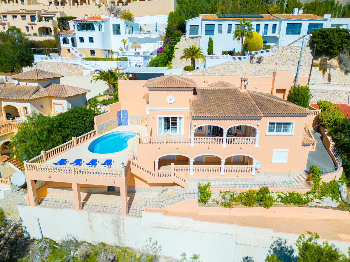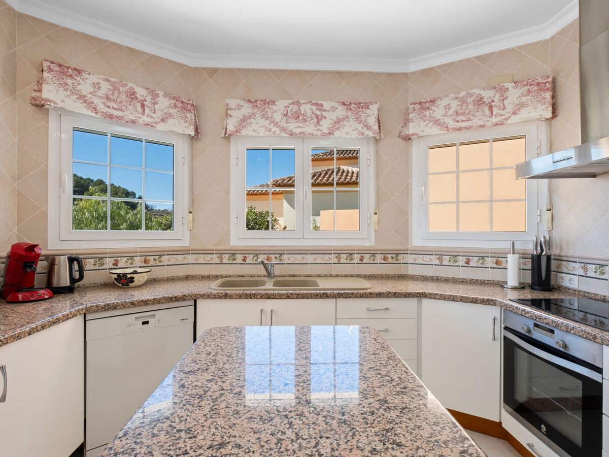 À 3 km du centre de Moraira, situation tranquille, ensoleillée sur une colline, à 3.5 km de la mer, à 3.5 km de la plage.