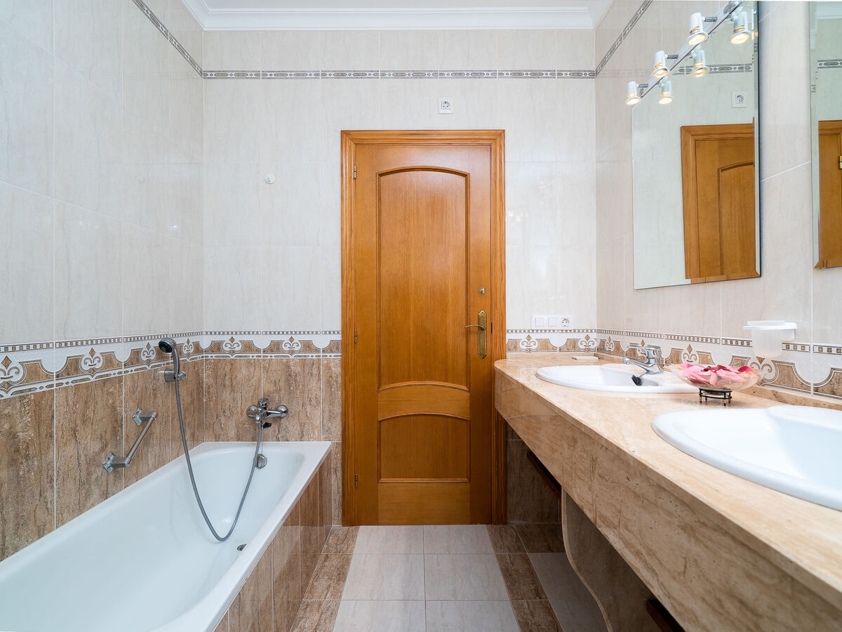 1 grande chambre avec 1 grand-lit, bain/douche/bidet/WC, double vasque, TV (satellite), DVD et air-conditionné.