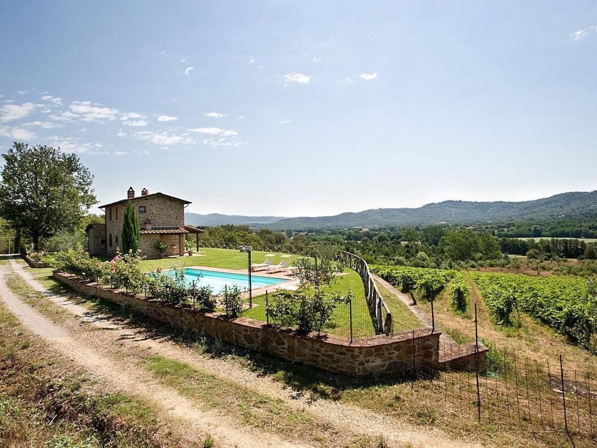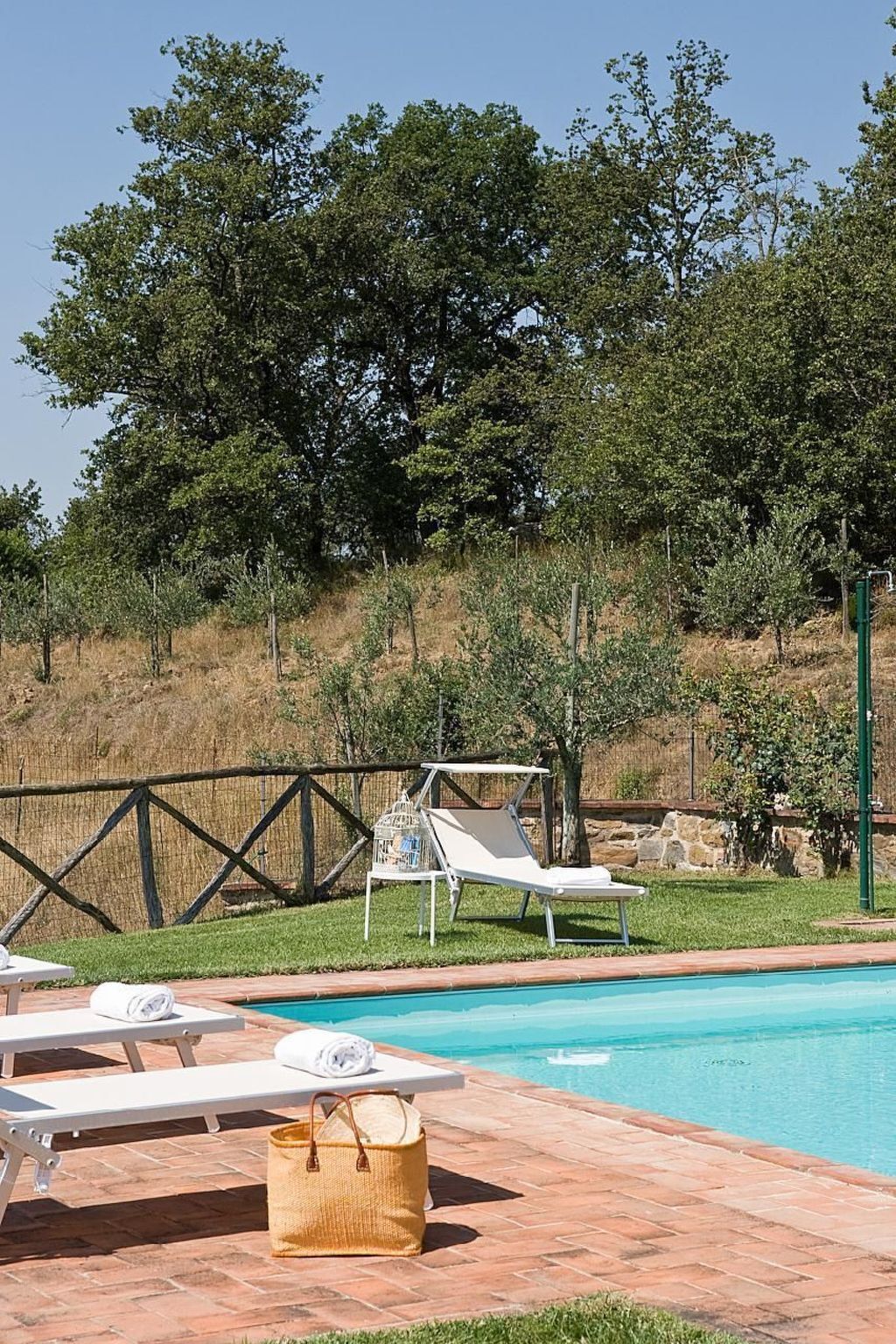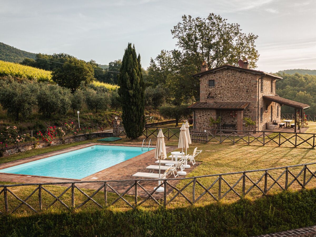 Villa Miravalle with private swimming pool is located 200m from the farmhouse, surrounded by a large private lawn, immersed in 3 hectares of vineyards owned by the farm, and a large terrace overlooking the valley of the Ambra river.Fully independent, air-conditioned, it sleeps 6 (+2 on request) and is ideal for those seeking extreme peace and privacy.Equipped with all the necessary equipment, the house has terracotta floors inside, exposed wooden beams.Outside there is a typical wood-burning oven, barbecue, a wonderful covered veranda from which you can enjoy a breathtaking view of the surrounding countryside.Villa Miravalle has an exclusive private swimming pool (10m x4m) and a large private, fenced garden enjoying privacy and independence, a magical place to relax.On the ground floor: kitchen (dishwasher and electric oven), dining room, living room with fireplace, twin bedroom (or double bedroom), bathroom with shower.On the first floor there is a double bedroom, equipped with a safe, a twin bedroom (or double bedroom), bathroom with shower.