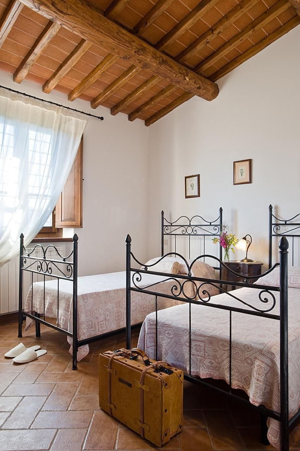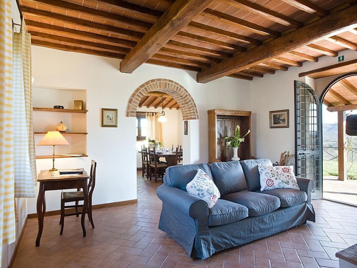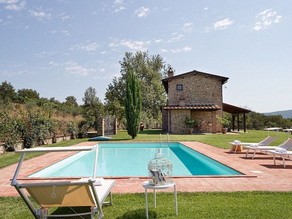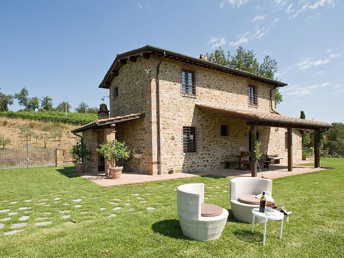 Villa Miravalle with private swimming pool is located 200m from the farmhouse, surrounded by a large private lawn, immersed in 3 hectares of vineyards owned by the farm, and a large terrace overlooking the valley of the Ambra river.Fully independent, air-conditioned, it sleeps 6 (+2 on request) and is ideal for those seeking extreme peace and privacy.Equipped with all the necessary equipment, the house has terracotta floors inside, exposed wooden beams.Outside there is a typical wood-burning oven, barbecue, a wonderful covered veranda from which you can enjoy a breathtaking view of the surrounding countryside.Villa Miravalle has an exclusive private swimming pool (10m x4m) and a large private, fenced garden enjoying privacy and independence, a magical place to relax.On the ground floor: kitchen (dishwasher and electric oven), dining room, living room with fireplace, twin bedroom (or double bedroom), bathroom with shower.On the first floor there is a double bedroom, equipped with a safe, a twin bedroom (or double bedroom), bathroom with shower.