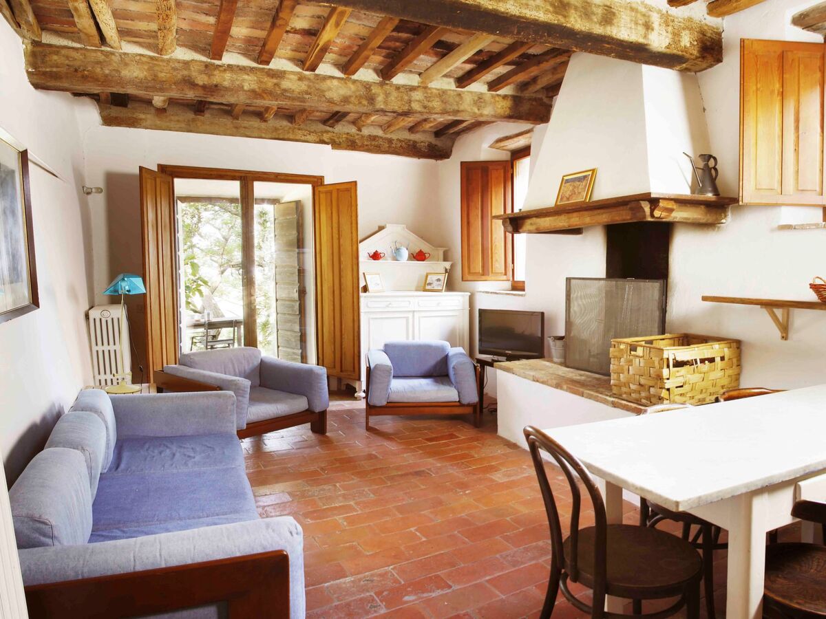 One of the farmhouses facing the small square On the first floor there is a living room with a large fireplace, two bedrooms and a bathroom.