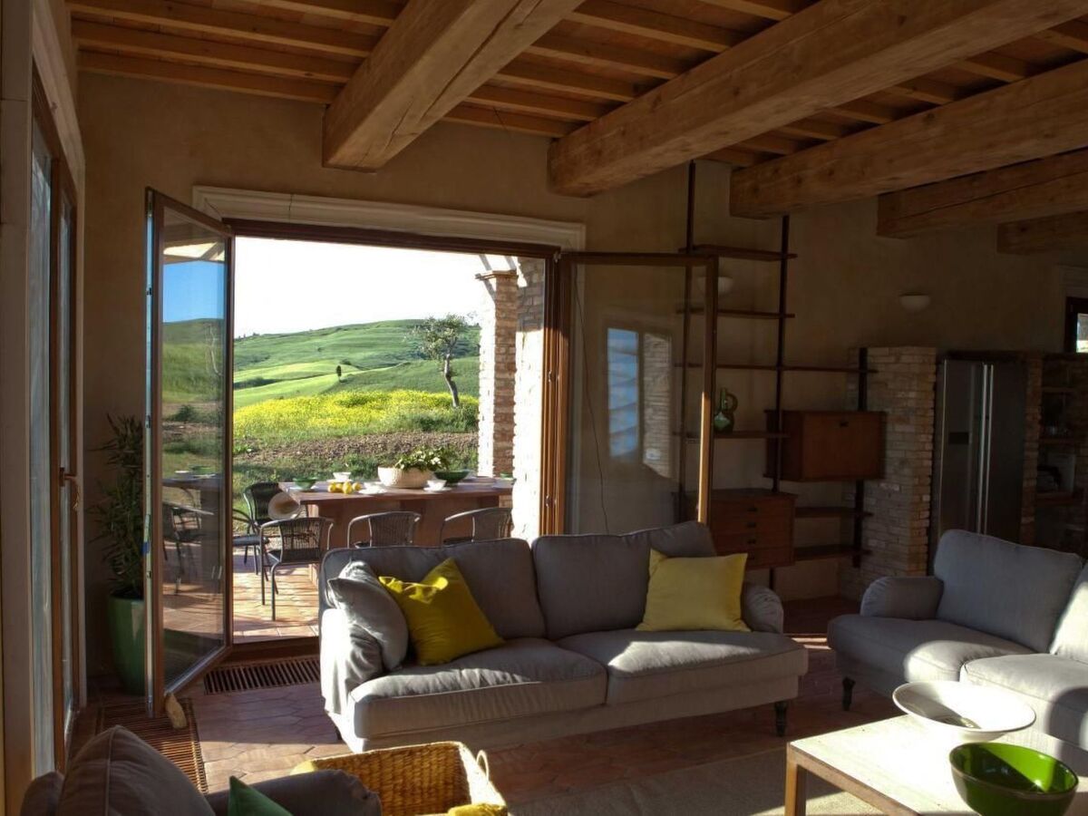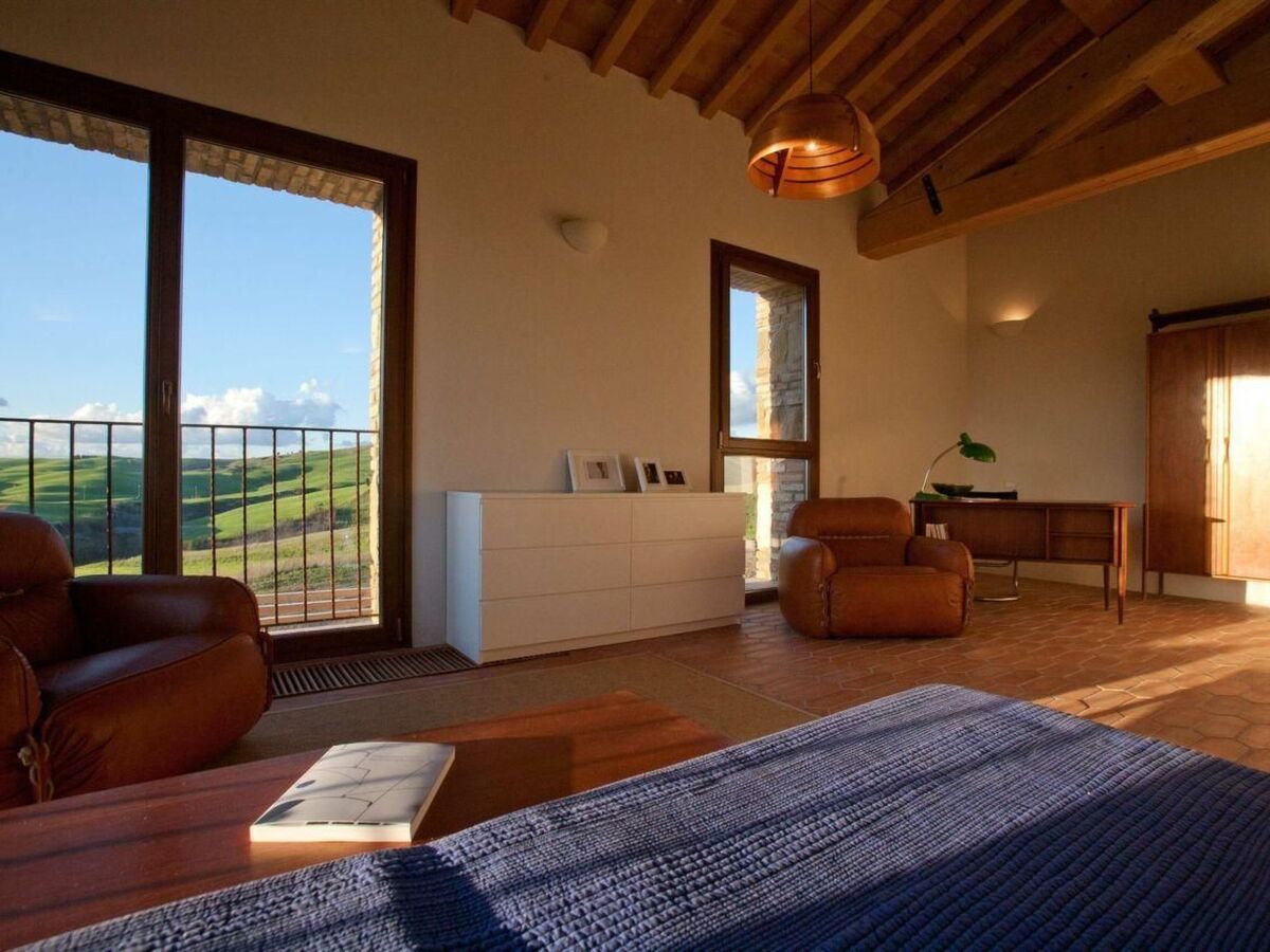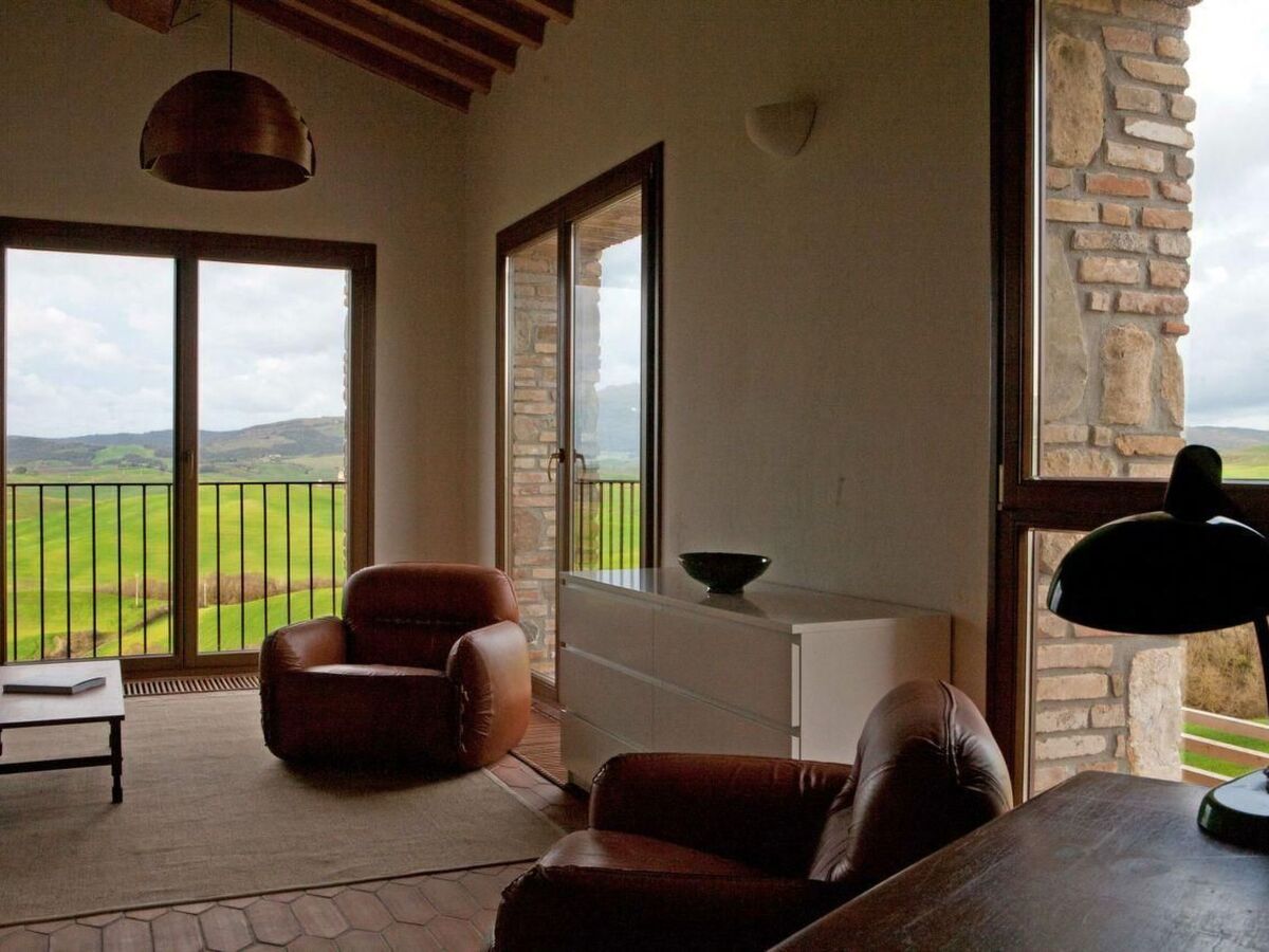 The space created by the architect allows to admire the hilly landscape of Volterra.