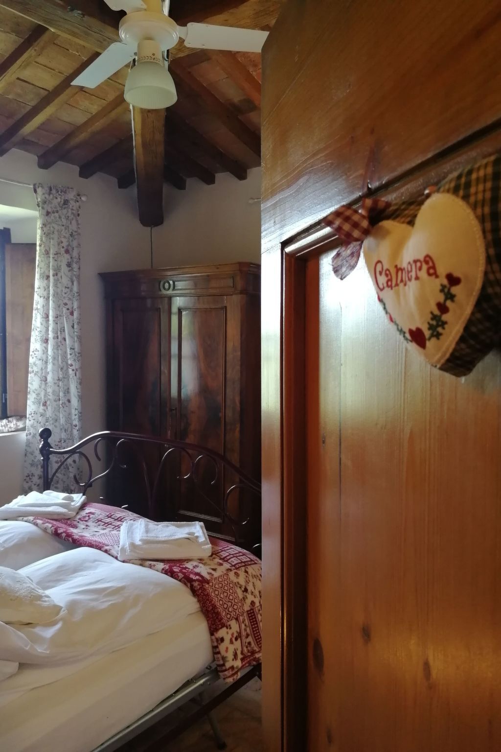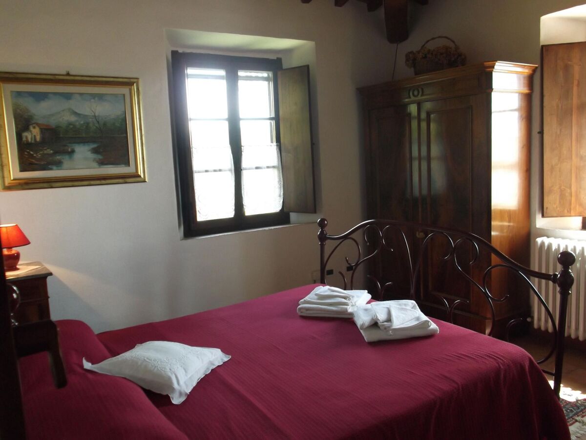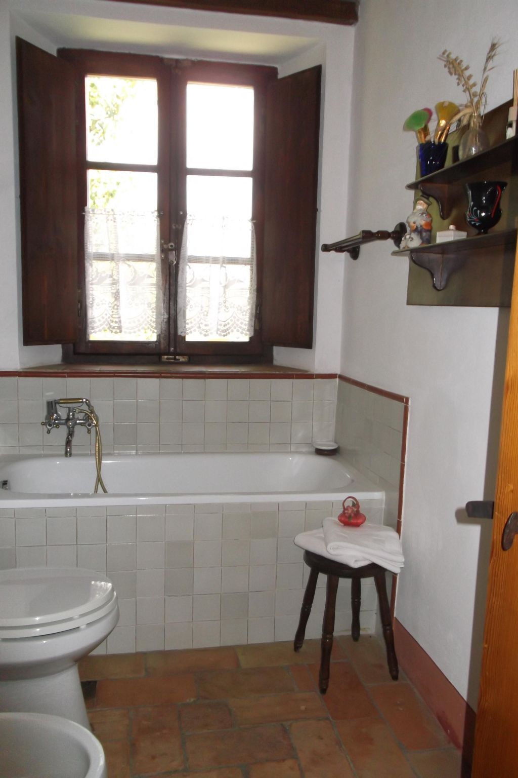 There are also two cosy and bright bedrooms, each with a double bed, and a bathroom with bathtub, from whose window you can admire Monte Cetona.
