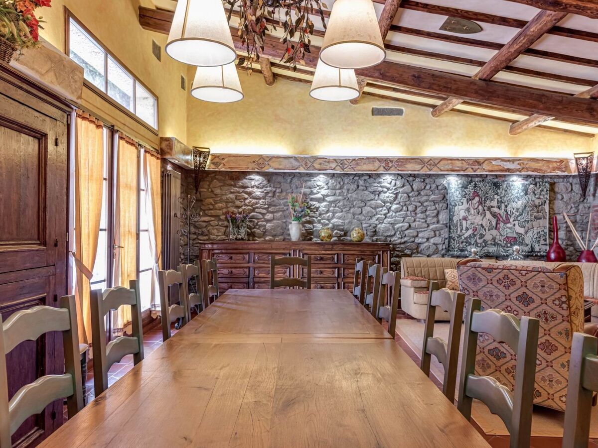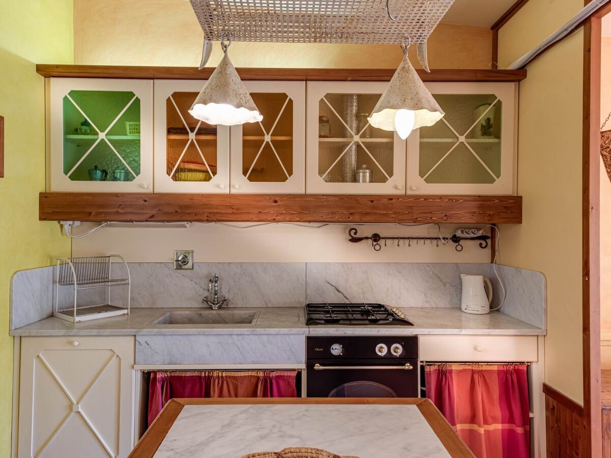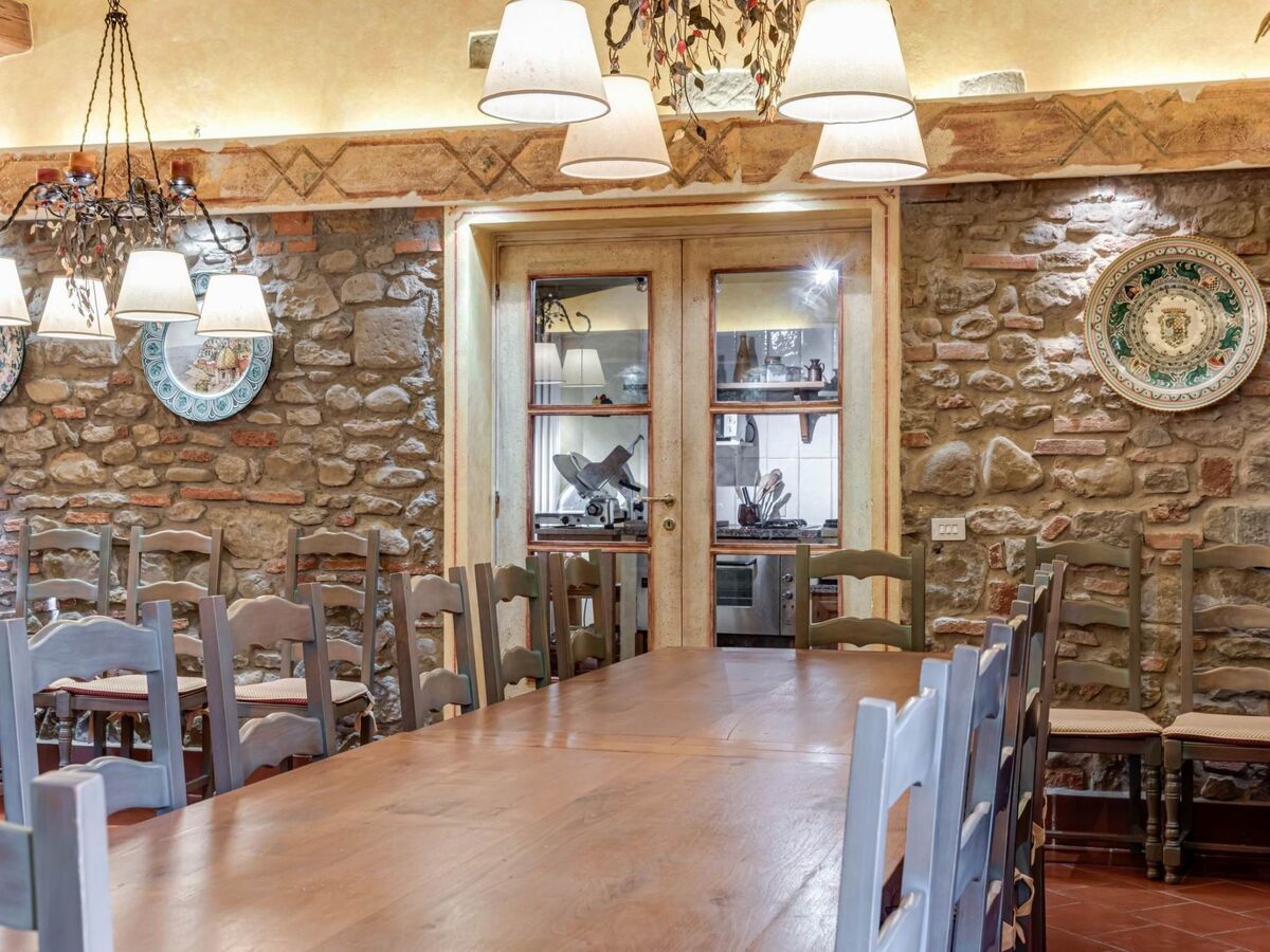On the ground floor there is a large common room with stone walls, a large dining table, fireplace and sofas, a spacious fully equipped kitchen (oven, fridge with freezer, dishwasher, espresso machine, kettle, toaster) with grill and pizza oven and a bathroom.