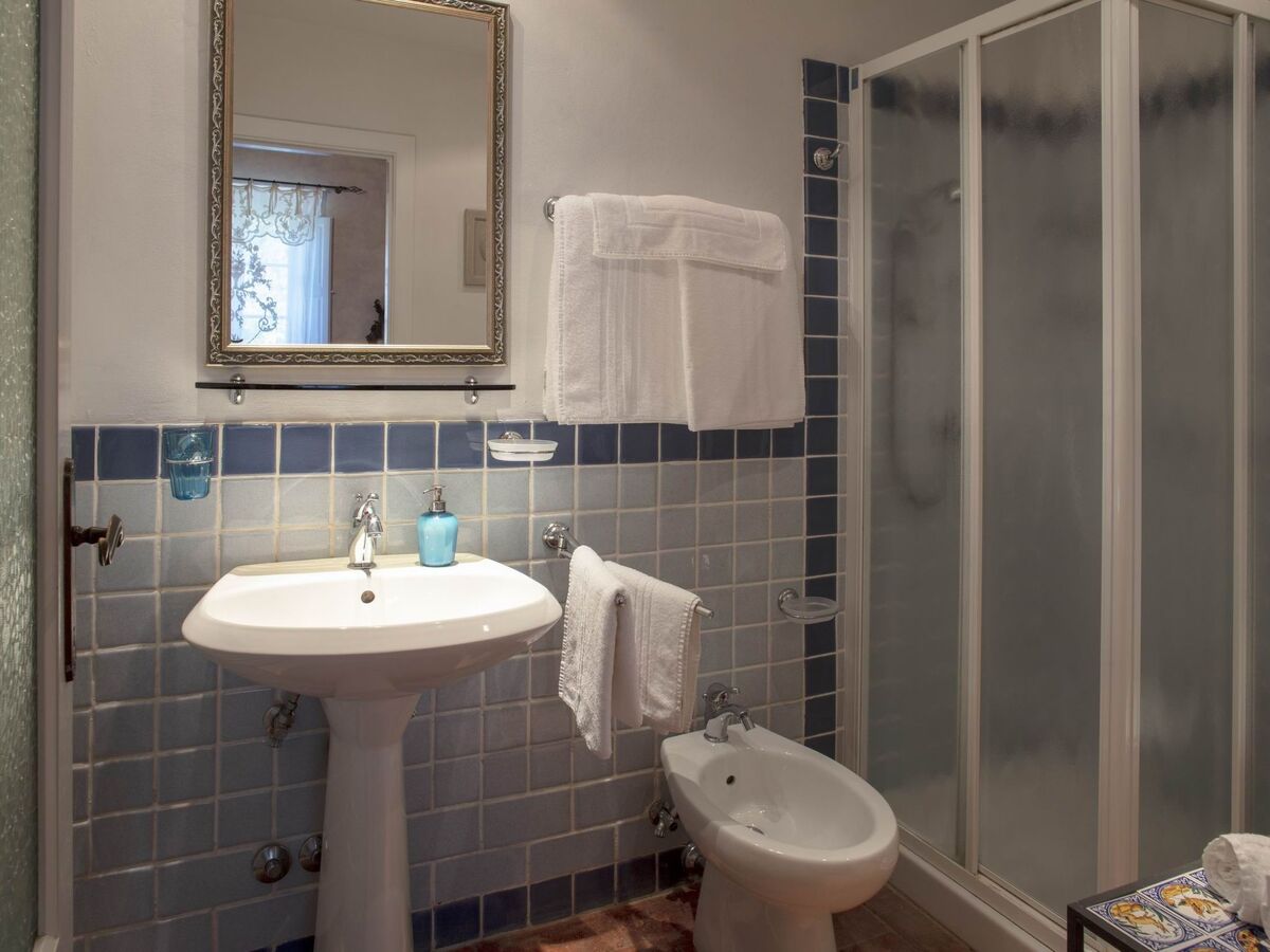First floor: double bedroom with access to the rooftop terrace, bathroom with bath and shower, double bedroom with access to the rooftop terrace, bathroom with shower, 3 double bedrooms, each with a double bed and each with a private bathroom with shower.
