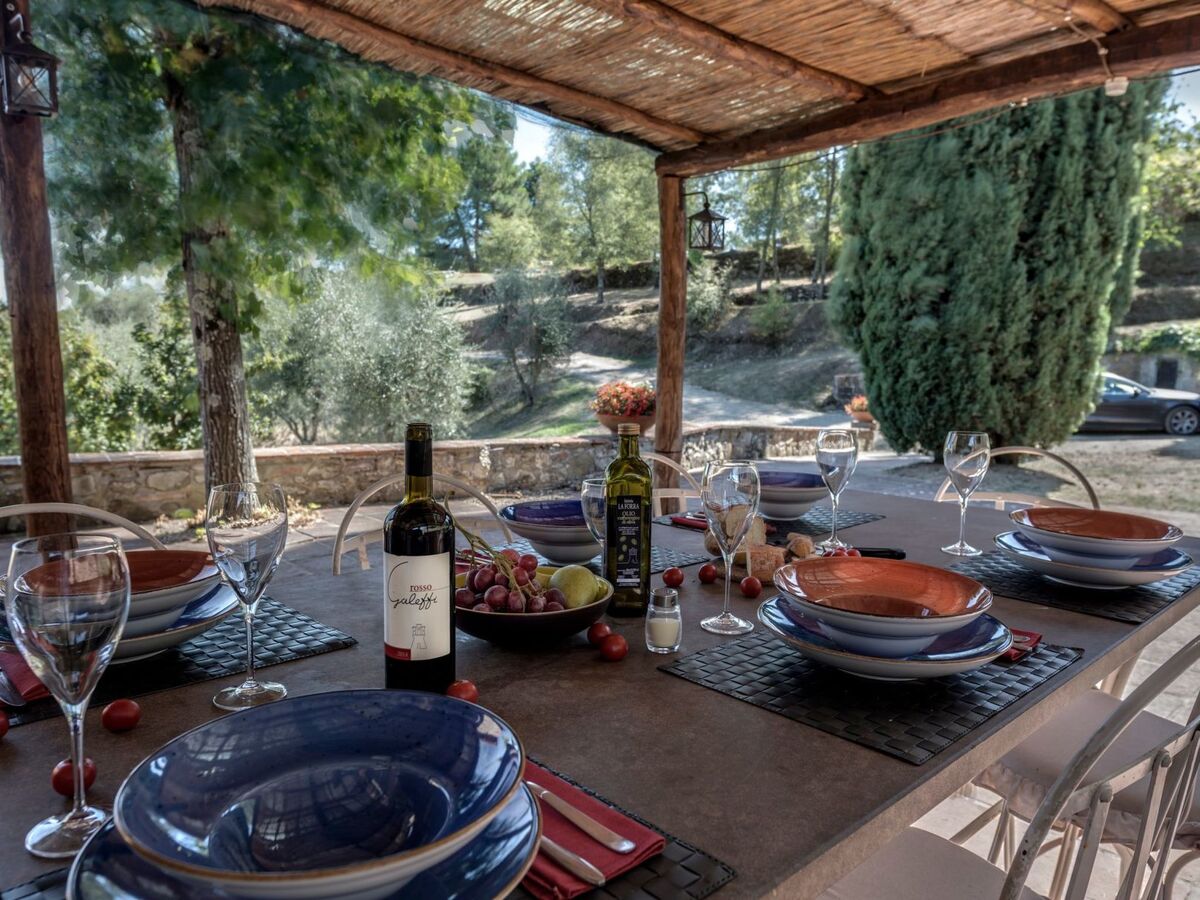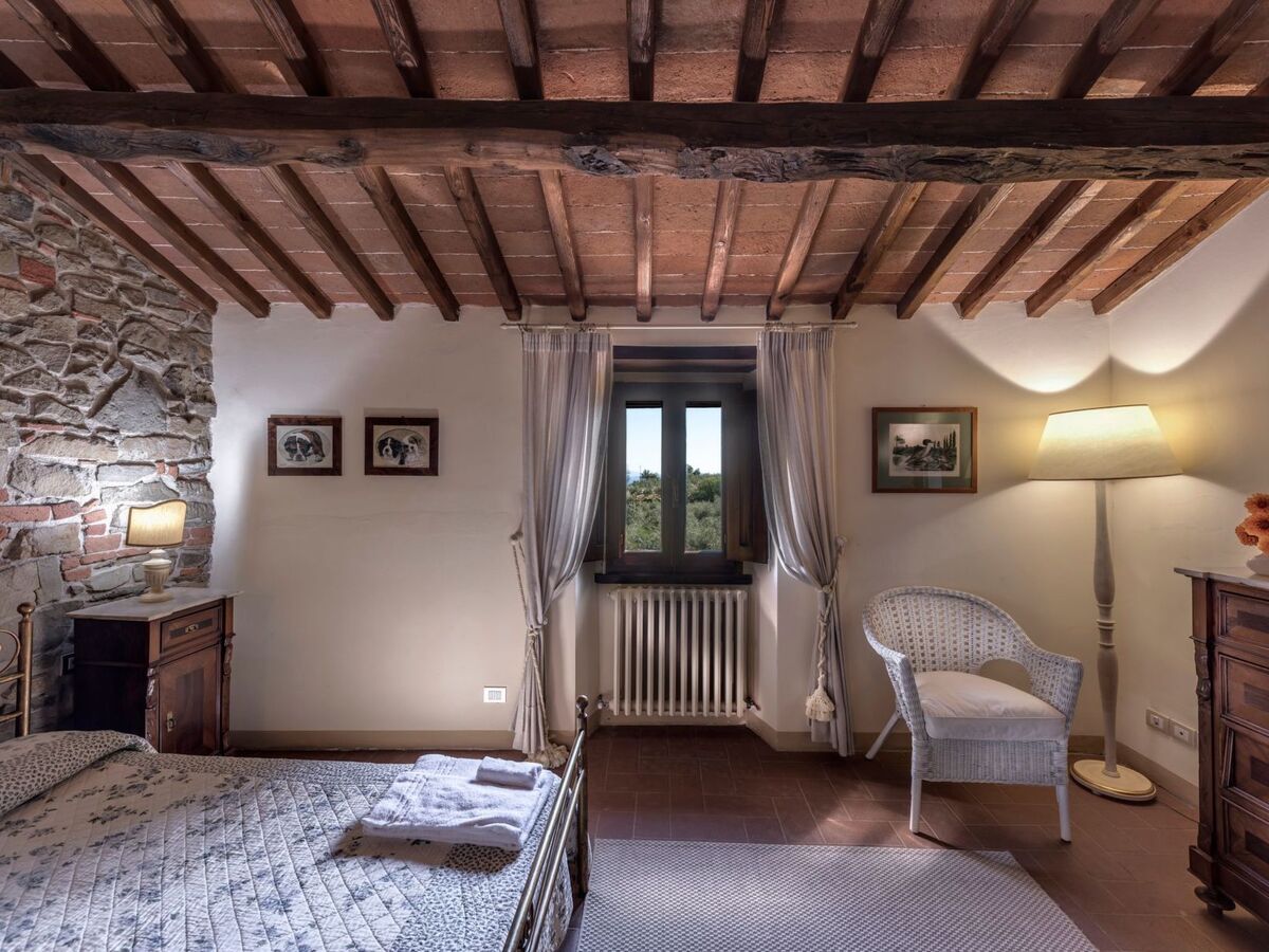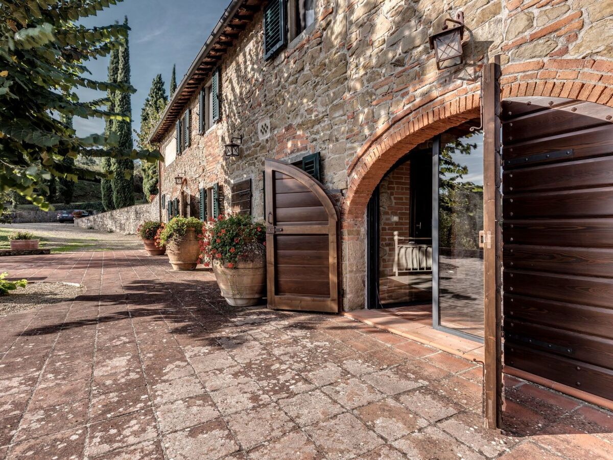 A short private road leads to the house through olive groves, vineyards and woods, the typical Chianti landscape.
