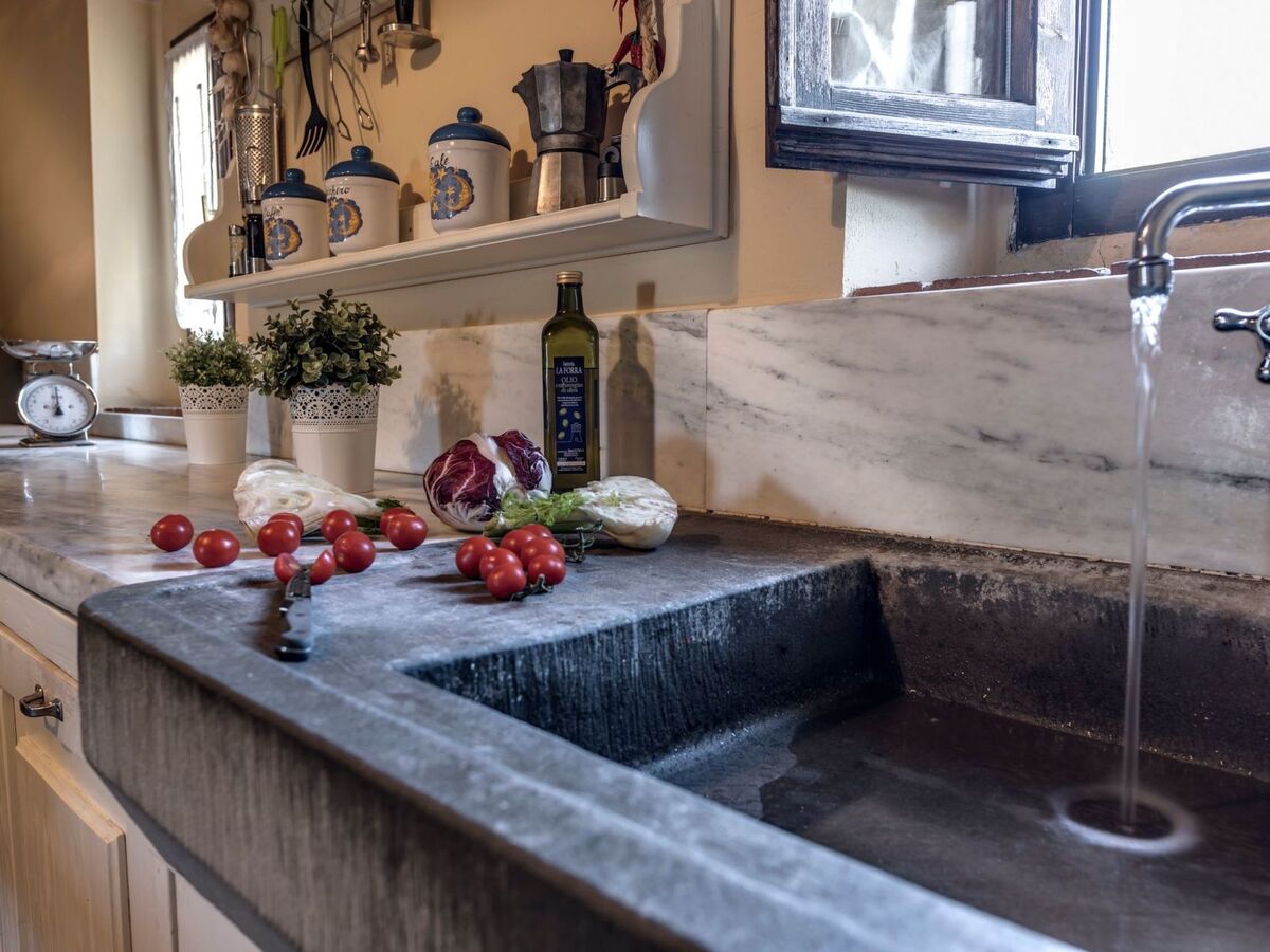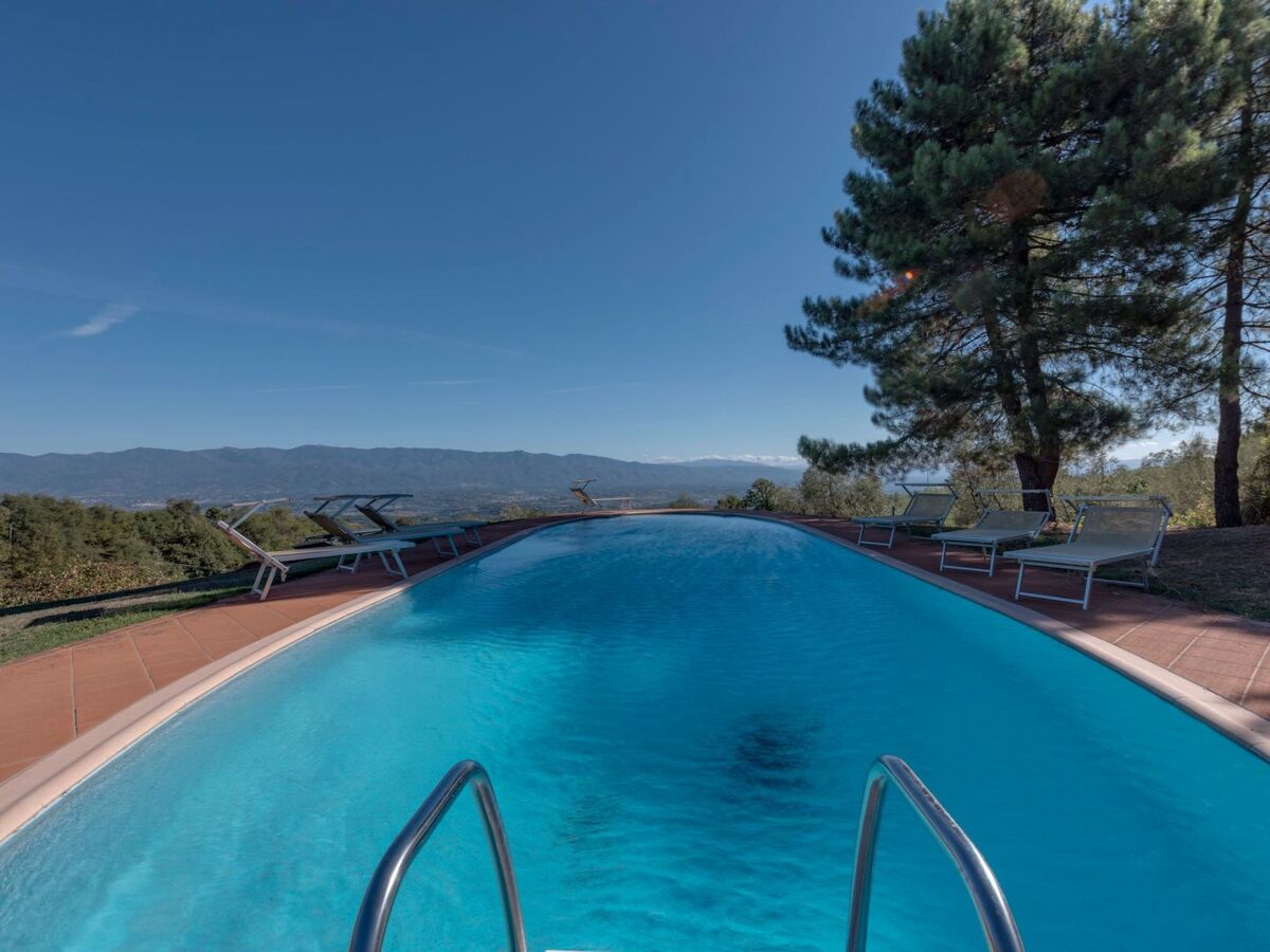 The private swimming pool surrounded by greenery, in a unique panoramic position, offers a beautiful view of the valley and has sun loungers for all guests, as well as shaded outdoor areas.