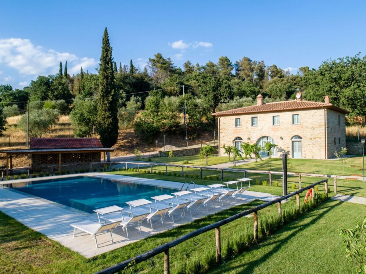 Pool is open from 14 of May till 30 of September.Electric gates - Private swimming pool (12 x 6) with shower - Outside eating area with patio next the pool and barbecueGround floorLiving room with fireplace, Smart TV SAT, and air conditioningDining room with air conditioningKitchen with 5 stoves, dishwasher, oven, microwave, American coffee machine, kettle and toasterLaundry room with ironing facilities1 Double bedded room with Jacuzzi and air conditioning1 Shower room with hairdryerFirst floor 1 Double bedded room with air conditioning and ensuite shower room with hairdryer3 Double bedded room with air conditioning1 Single bedded room with air conditioning2 Shower rooms with hairdryerMontecchio (Restaurant) 2 KmCastiglion Fiorentino 3 KmCortona 7 KmArezzo 20 kmTrasimeno Lake 30 KmMontepulciano 35 KmPienza 45 KmChianti area 50 KmSiena 65kmPerugia (Airport) 61 KmFirenze 91 Km (one hour by rail from Castiglion Fiorentino)