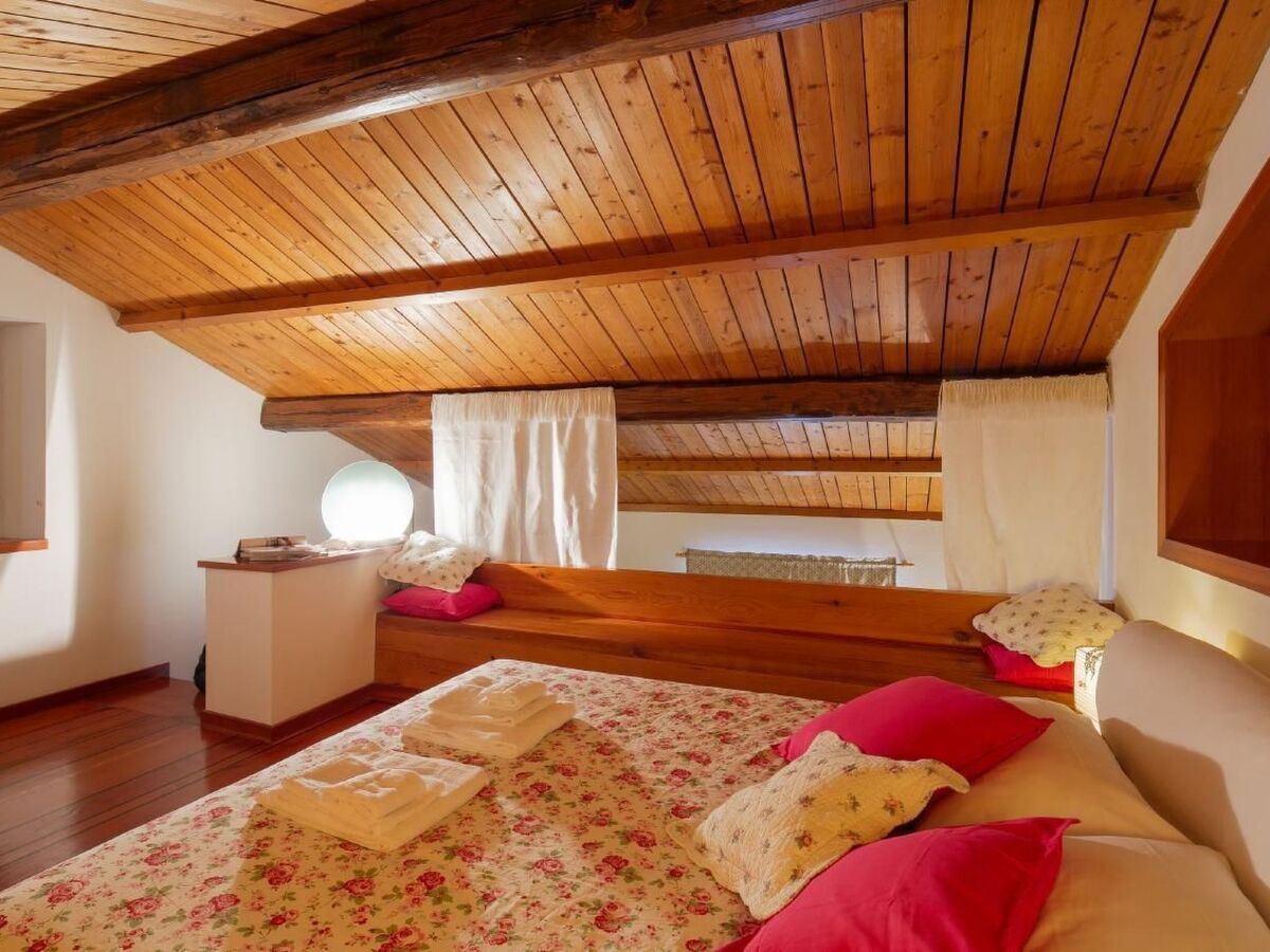 The first floor is made up of a double room and a twin bedroom which share a bathroom with tub.