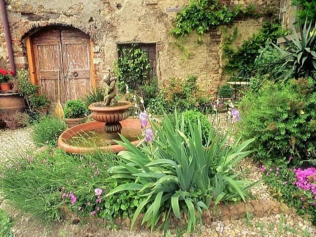 Le jardin offre une vue spectaculaire sur les collines environnantes, les vignobles et les oliveraies.