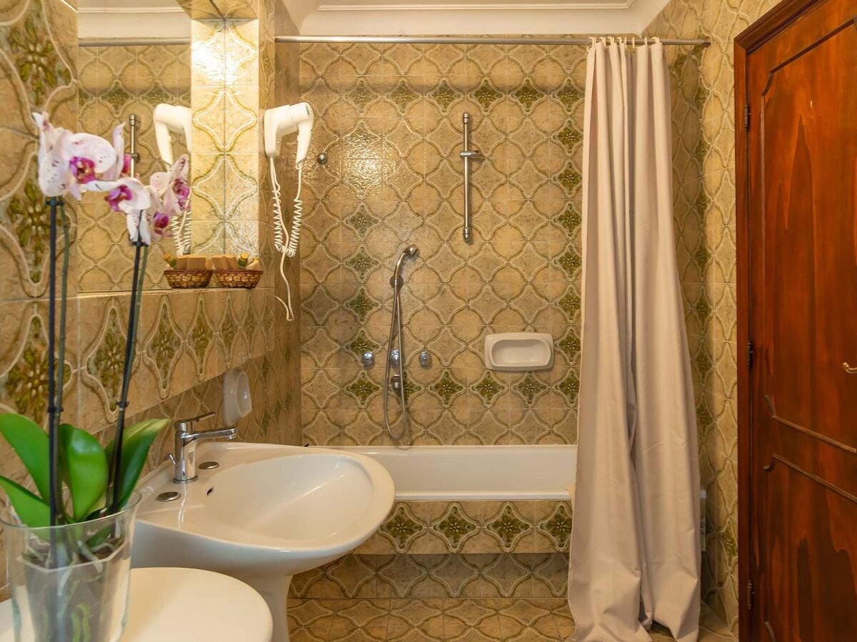 The 6 bathrooms on the first floor are present in 4 out of 5 rooms except for 2, one is located in front of the triple room with sofa bed, the other is located near the living room with fireplace.