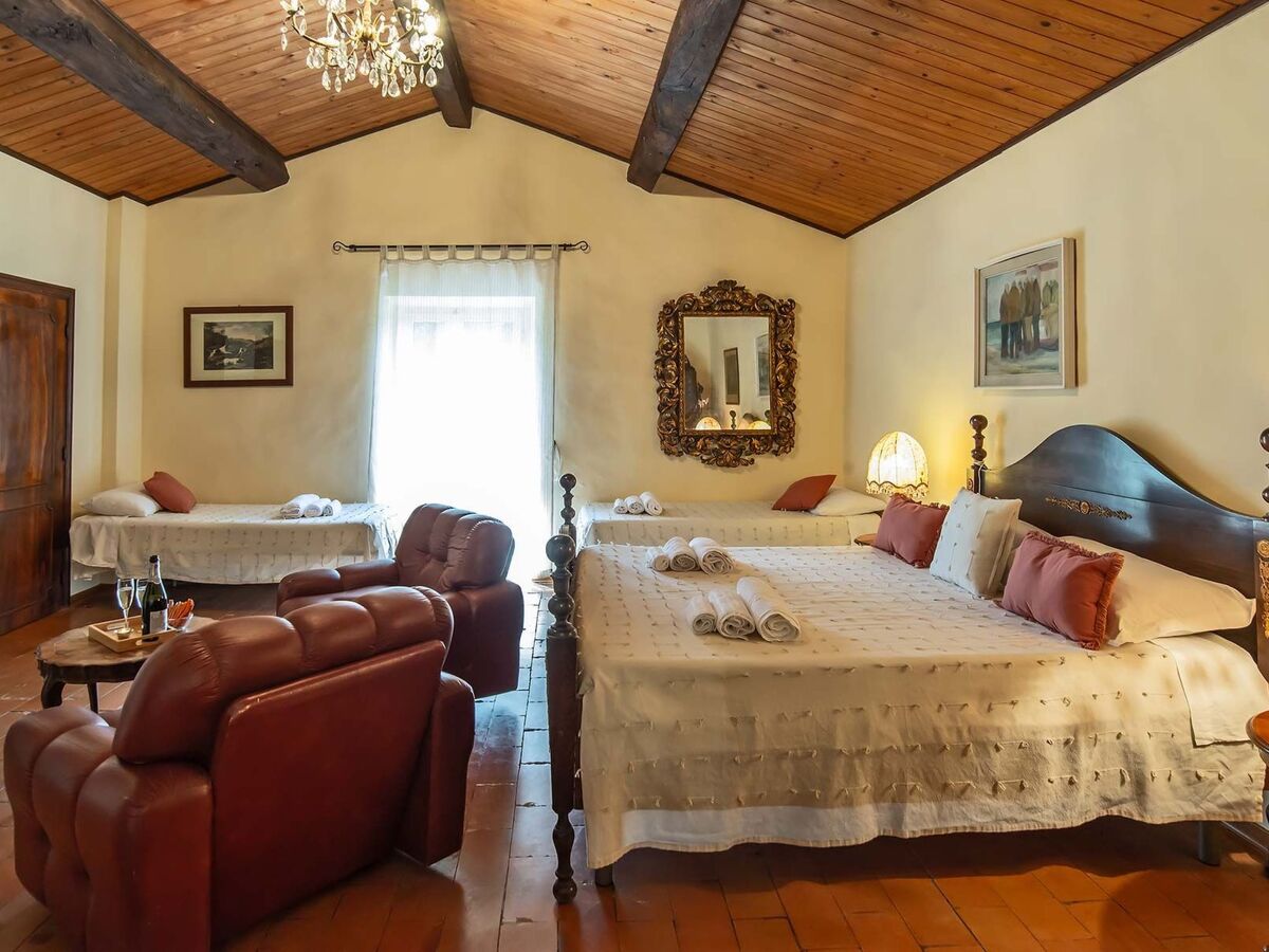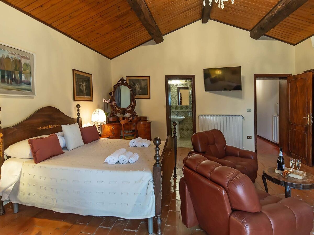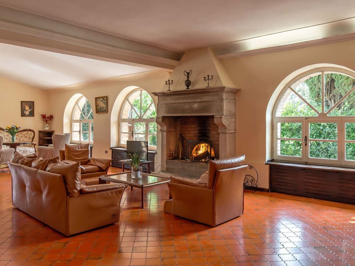 The villa consists of 2 floors: on the first floor are the 5 bedrooms (2 doubles, 2 triples of which one with a single sofa bed and 1 quadruple with a double bed and two singles) and 6 bathrooms, as well as a living room with a typical Tuscan fireplace.