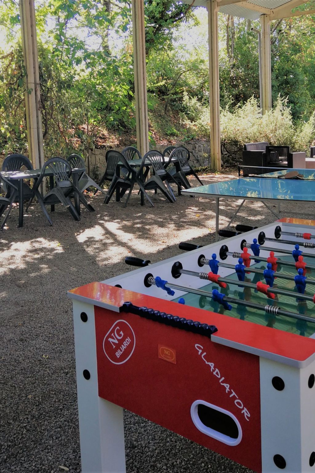 In the park there is also a large gazebo with barbecue and various relaxation areas, including 2 lounges, tables, chairs, table tennis and table football (professional table football).