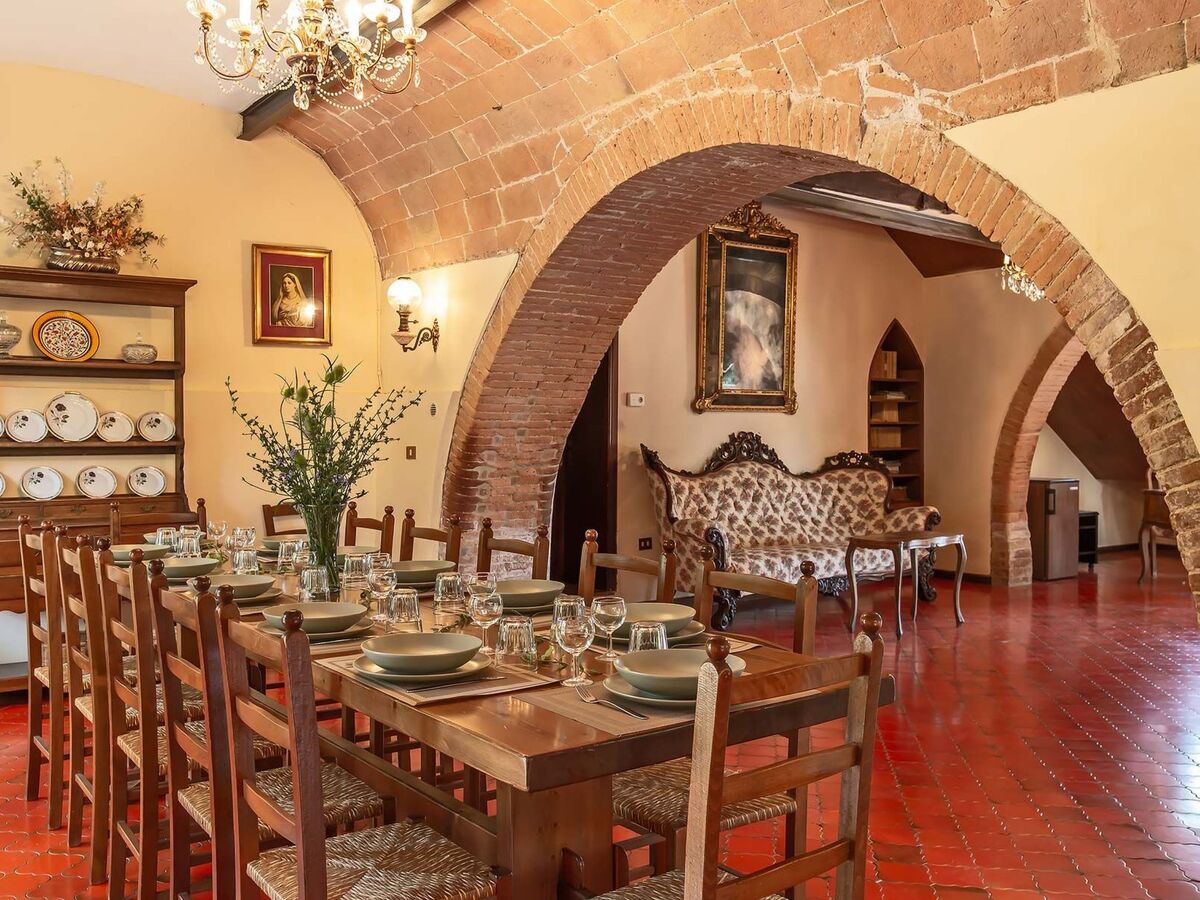 The villa is located a few kilometres from the medieval village of Cetona, in the Val di Chiana Senese countryside, and is part of a 40-hectare farm complex comprising three farmhouses, one of which is used as a restaurant, vineyards, olive grove and 17 hectares of private woodland.