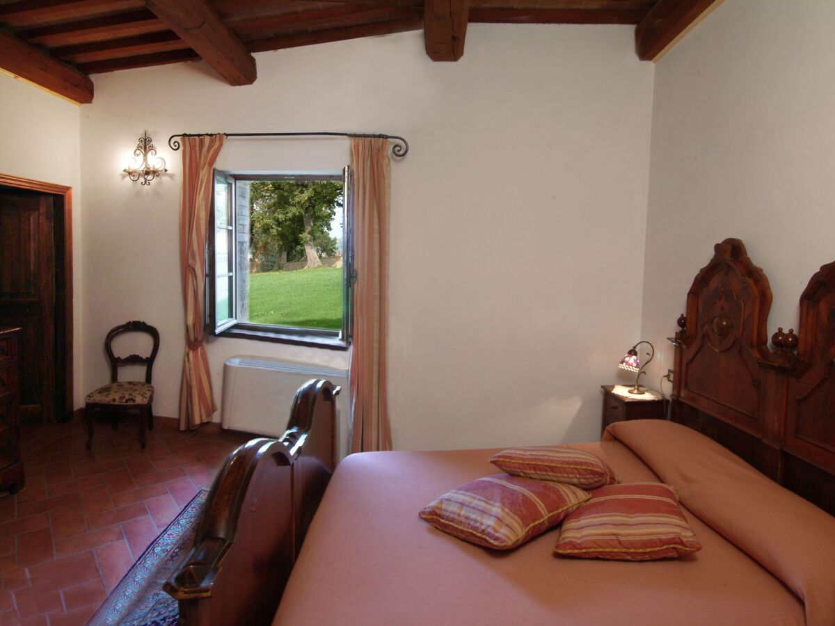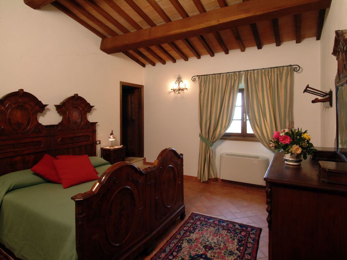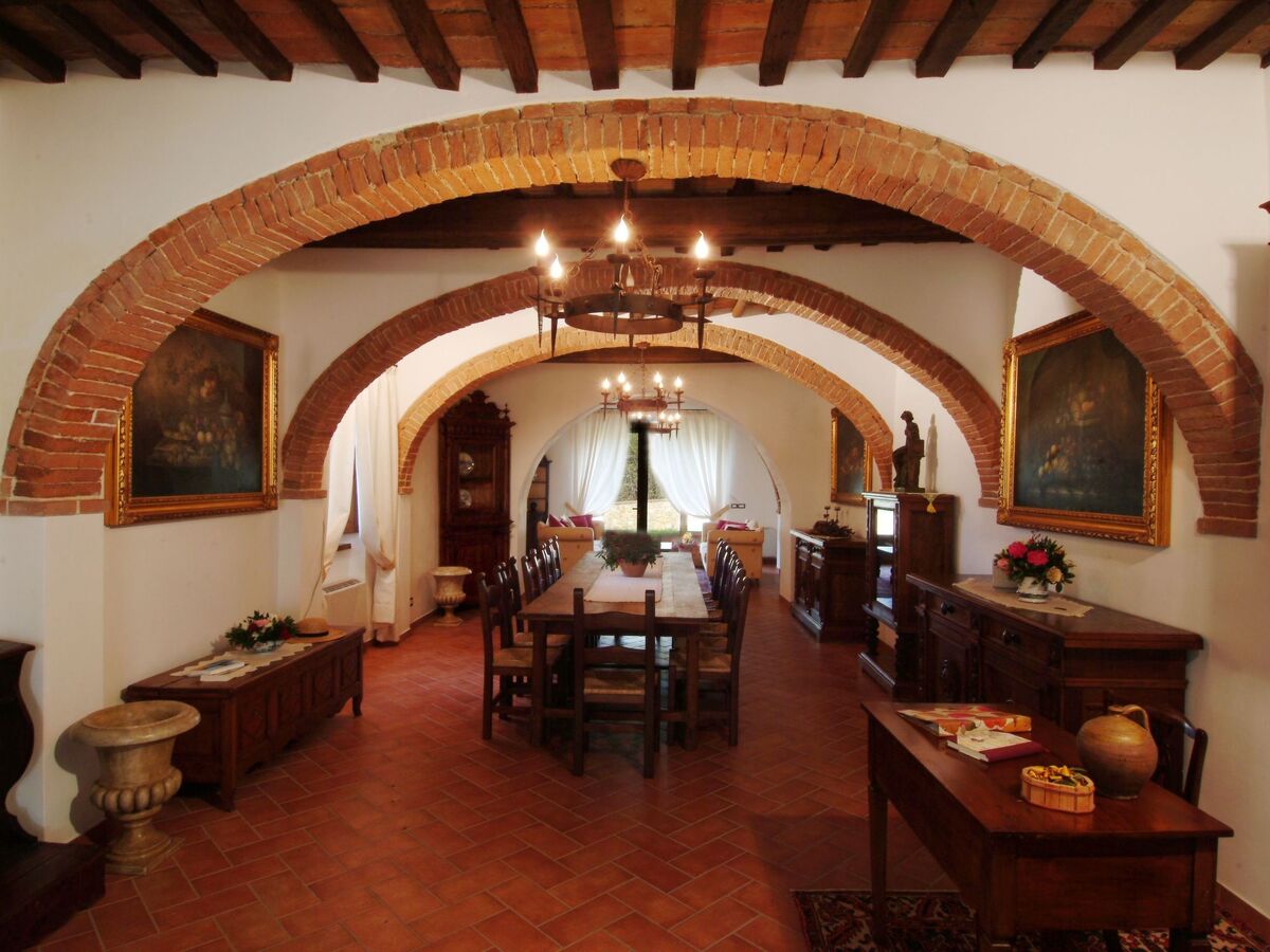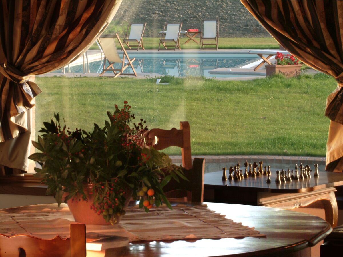 Furnished in typical Tuscan style with antique and wooden furniture, the villa has a large garden with terracotta pots containing geraniums, wild roses, lavender and rosemary bushes, which form a beautiful setting for the swimming pool (15 x 5 m, 90 to 170 cm deep, open from 9 May to 3 October), situated on a terrace overlooking the countryside.