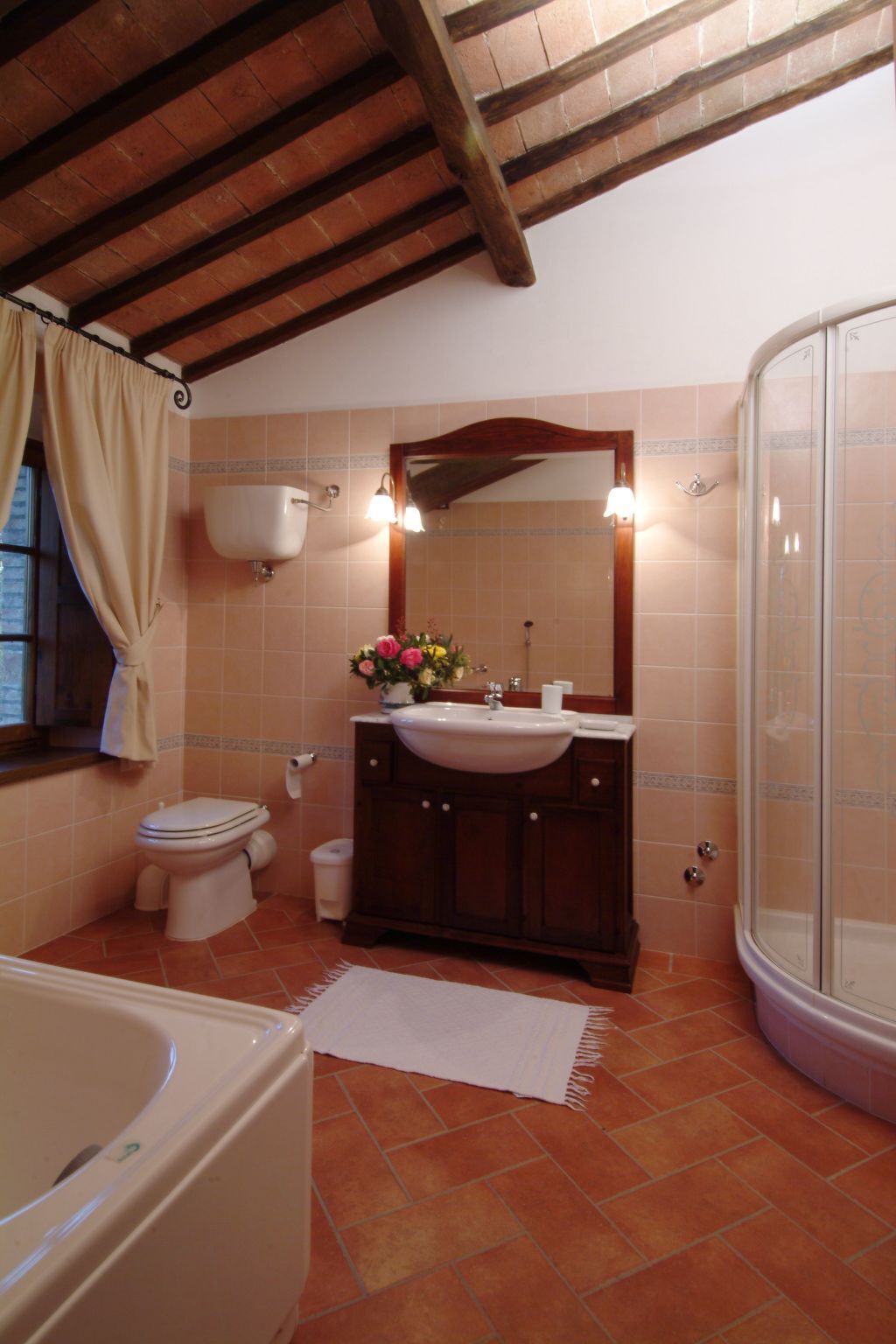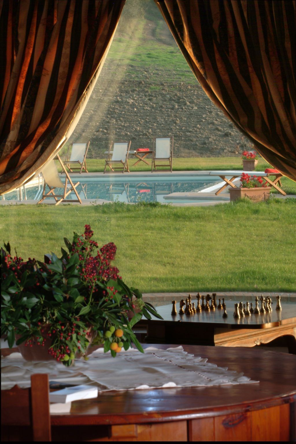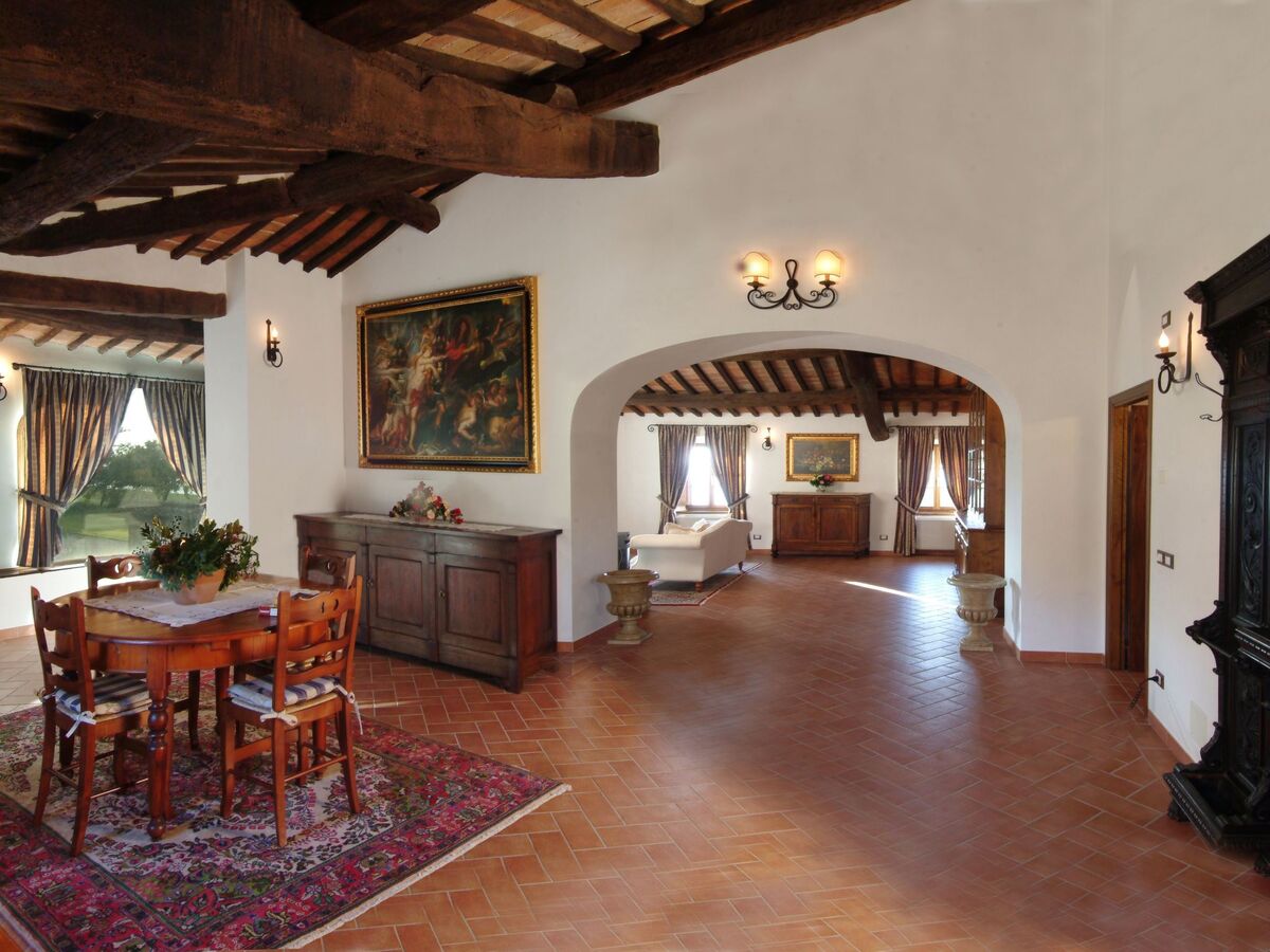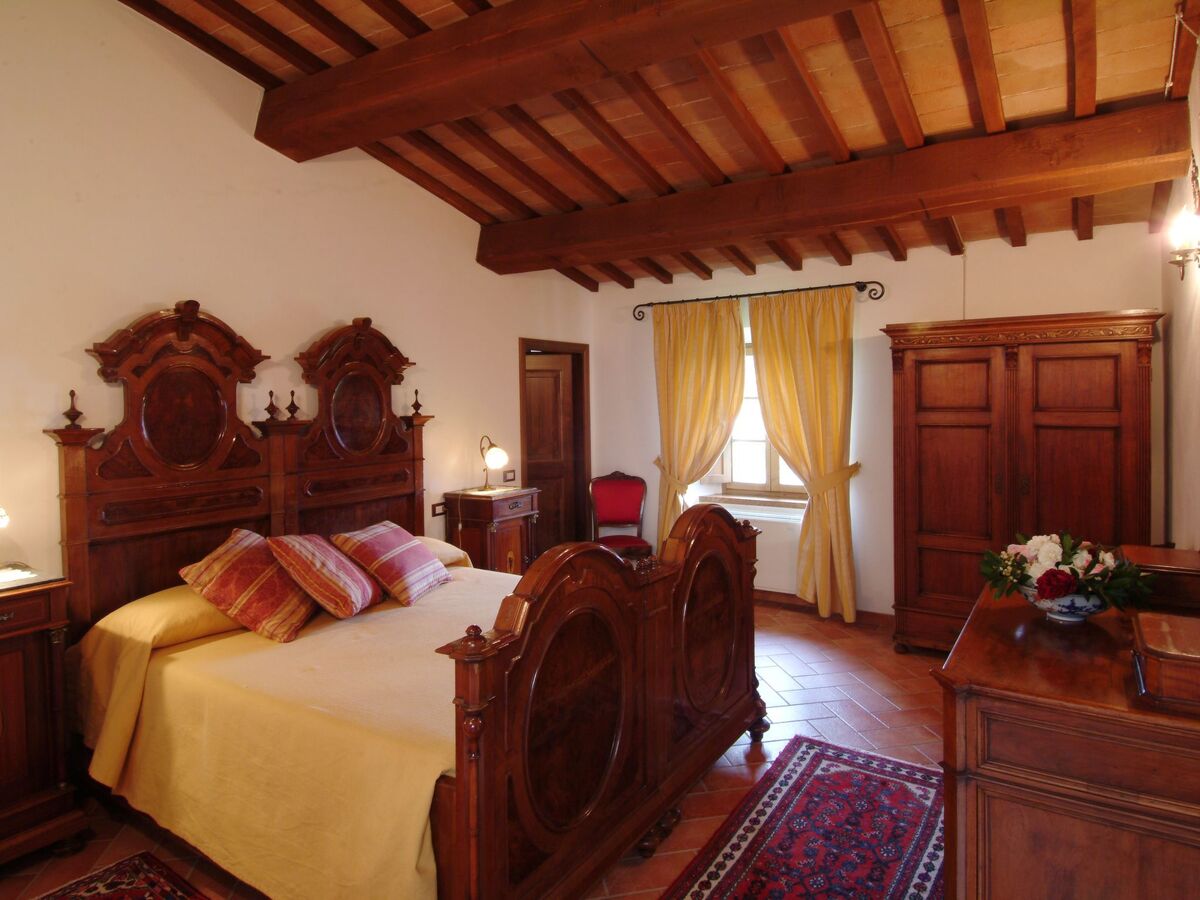 Furnished in typical Tuscan style with antique and wooden furniture, the villa has a large garden with terracotta pots containing geraniums, wild roses, lavender and rosemary bushes, which form a beautiful setting for the swimming pool (15 x 5 m, 90 to 170 cm deep, open from 9 May to 3 October), situated on a terrace overlooking the countryside.