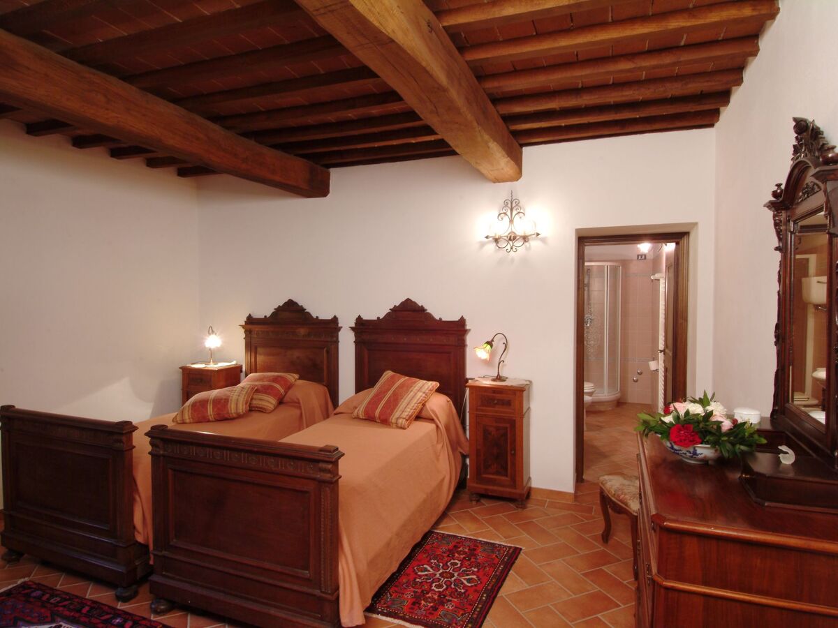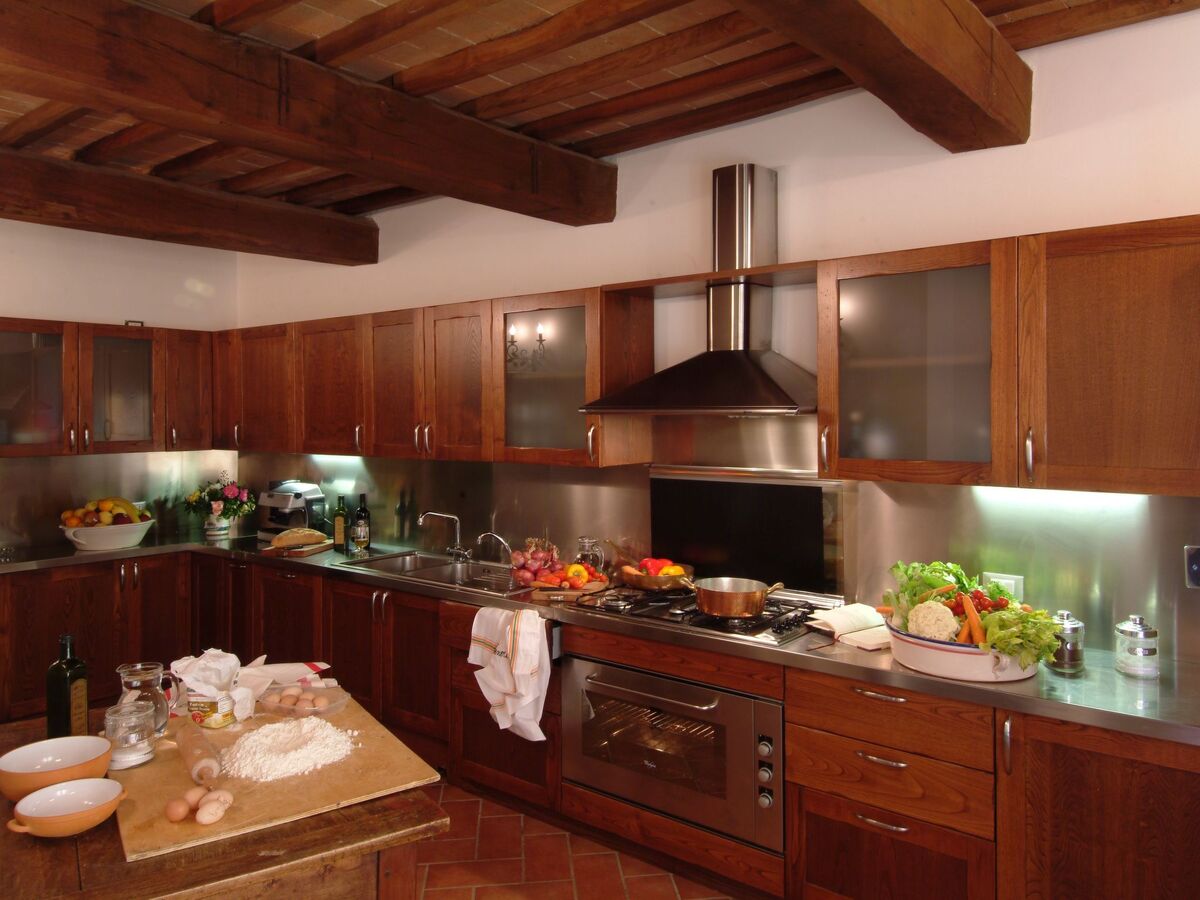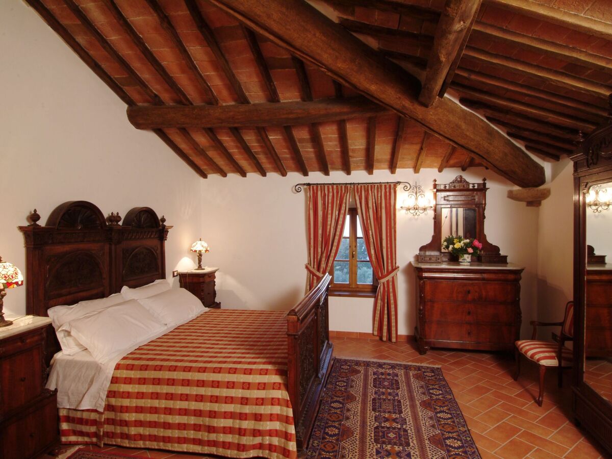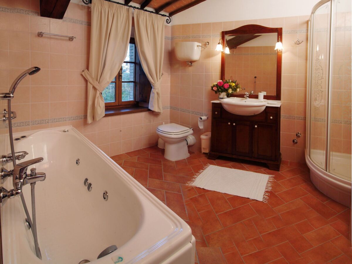 Furnished in typical Tuscan style with antique and wooden furniture, the villa has a large garden with terracotta pots containing geraniums, wild roses, lavender and rosemary bushes, which form a beautiful setting for the swimming pool (15 x 5 m, 90 to 170 cm deep, open from 9 May to 3 October), situated on a terrace overlooking the countryside.