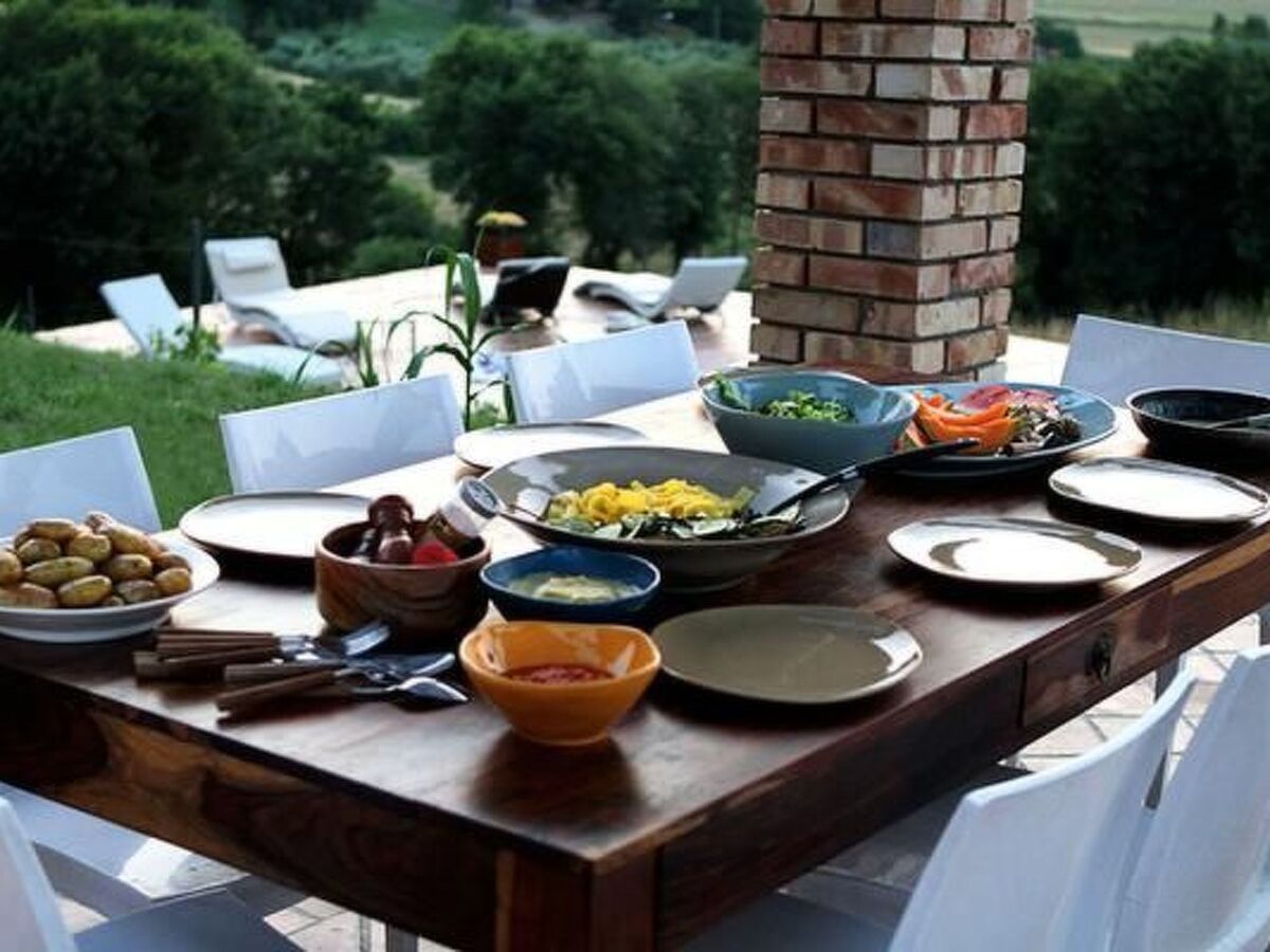 A l'intérieur, le rez de chaussée est terminé avec un sol en brique traditionnelle toscane tandis que le premier étage est fini avec plancher en bois de noyer.