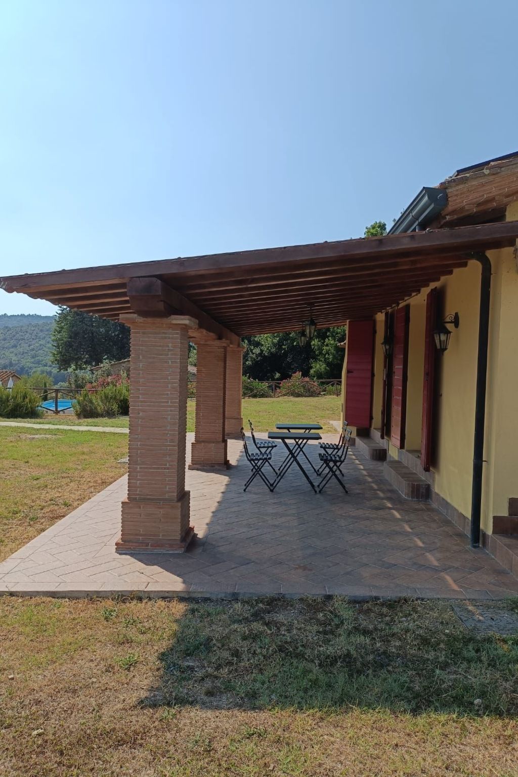The house is only 1600 m from the village, inside a private park of about 1,000 sqm with olive and cypress trees, completely fenced and with a splendid panoramic view of the green hills of the Val di Cornia, in a quiet but not isolated position.