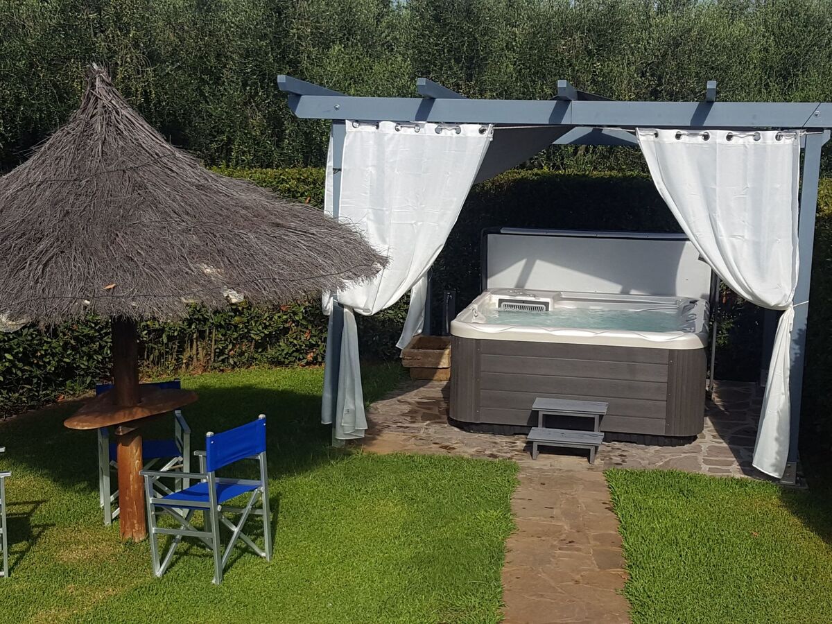 The property, entirely fenced off to guarantee privacy and security, offers an outdoor bathroom with all amenities, sun loungers and a personal barbecue for unforgettable evenings under the stars.