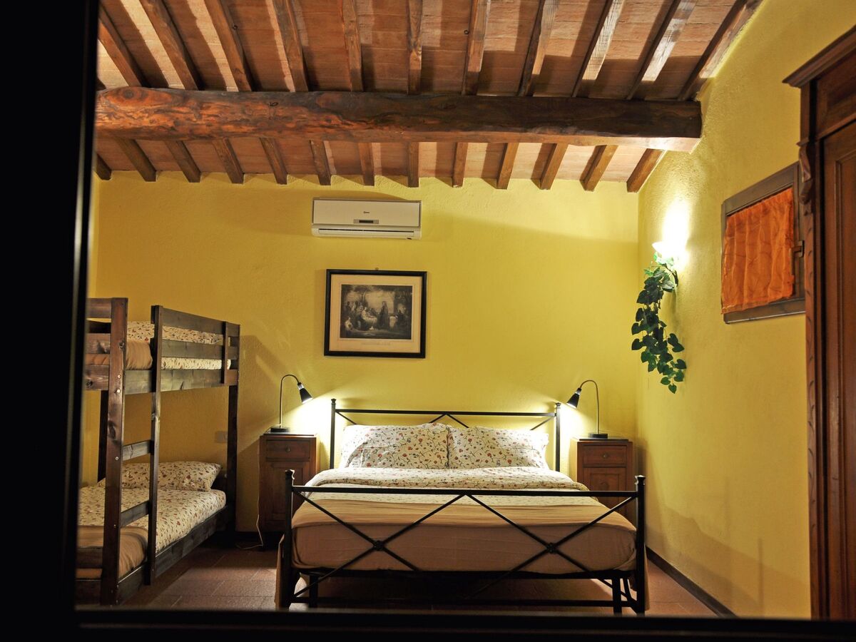 The sleeping area on the right consists of a double bedroom with a double bed and a bunk bed, ideal for a family.