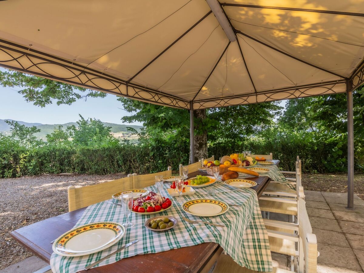 On the back of the house you can enjoy from the terrace with garden furniture and gazebo a beautiful view of the valley and the medieval castles of Poppi, Romena and Porciano.