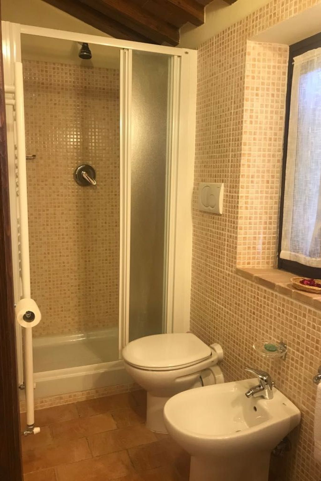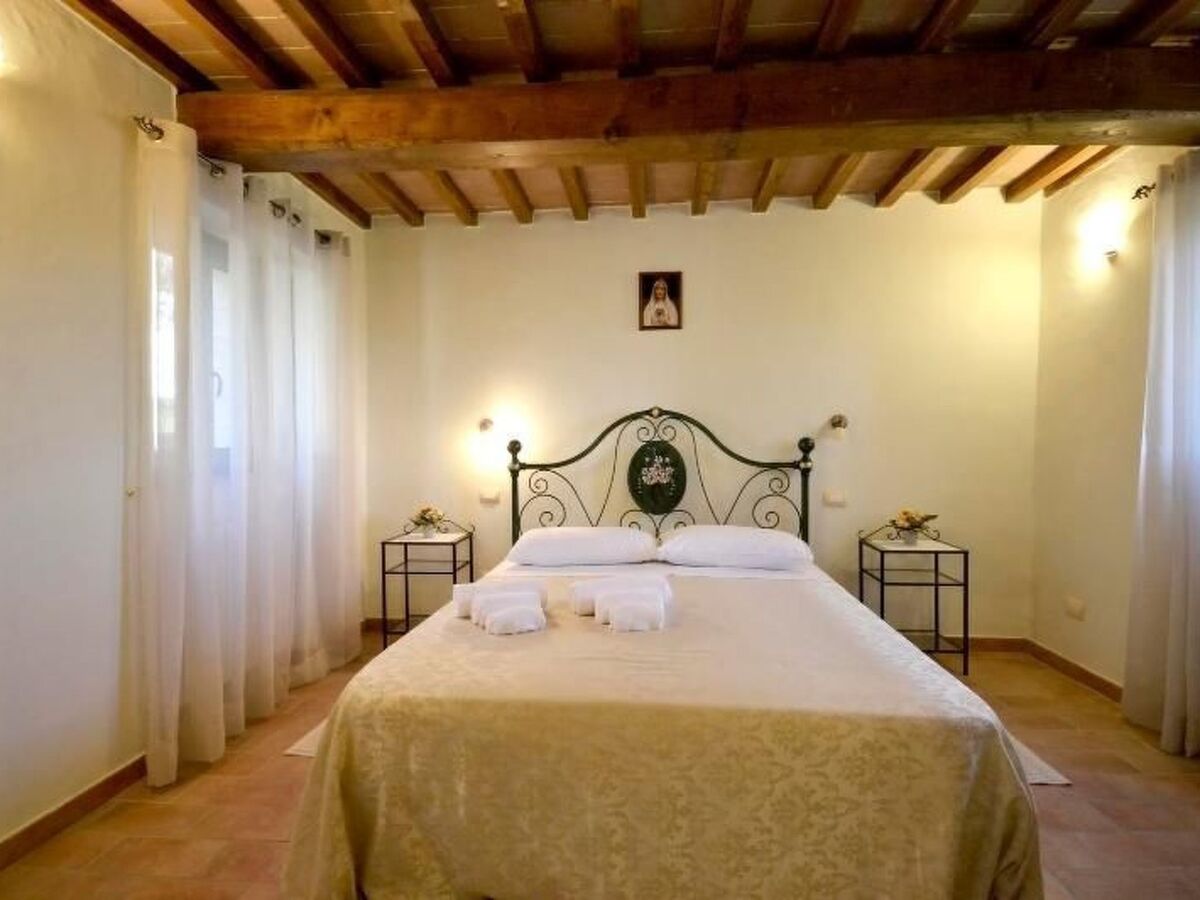 The farmhouse Poggio del Fabbro is located in San Pietro a Dame, a hamlet of the municipality of Cortona in the mountains of Cortona, 20km from the city, in a quiet and isolated position in the green mountains at an altitude of 700m above sea level on the border between Tuscany and Umbria.It is in the centre of a farm of about 65ha mainly composed of woods but also cultivated land.The farm's main products in addition to wood are: wine, oil, cereals, chestnuts, a small herd of sheep and farmyard animals (poultry and rabbits).It is the ideal place for those who want to spend a relaxing holiday away from the chaotic city noise.The farmhouse is located in a house dating back to about the end of the 19th century, renovated in 2011 while maintaining the original features.The house is about 90 sq m on 3 levels, where on the ground floor we find the kitchen equipped with dishwasher, oven, 4-burner stove, fridge with small freezer, toaster etc......., the living room with table, sofa bed, closed fireplace and satellite TV.On the first floor there is a double room, a single room and a bathroom with shower.on the second floor there is a double room, a single room which can be transformed into a double room if necessary, and a bathroom with shower.outside there is a 1000sqm fenced garden with a private swimming pool, barbecue, gazebo, sunbeds and some games for children.the last 1500metres of road for access to the house are not asphalted Basic information - Pets allowed: none - type of building: Detached house - Total number of floors in the building above the ground floor: 2 - size of property: 1000 m² - year of construction: 1890 - Year of the last complete renovation : 2014 - detached house - meters above sea level: 700 - Number of bedrooms: 4 - Number of bathrooms: 2 Top features - WiFi - heating: Everywhere - garden: For sole use - outdoor pool - ㄴ for sole use - Total of private car parking spaces: 2 - ㄴ of which garage spaces: None - ㄴ of which carport spaces: 2 - ㄴ of which private outdoor parking spaces: None Sleeping bedroom 11 - single bed - child's bed/ baby's cot bedroom 2 - double bed (more than 1,80 m width) bedroom 5 - double bed (more than 1,80 m width) bedroom 8 - double bed (more than 1,80 m width) Sleeping options at the property - child's bed/ baby's cot Bathroom bathroom 2 - shower - basin - toilet - hair dryer bathroom 5 - shower - basin - toilet - hair dryer Cooking/Living - coffee machine: coffee machine - fridge/freezer: freezing compartment, deep freezer, fridge - stove: gas hob, stove - oven - toaster - electric kettle - dishwasher - number of dining tables: no - number of seats: no - fireplace Entertainment - TV: satellite TV For children - high chair Utility - washing machine: For sole use in the object - iron - fan: 2 Outside area - grill/barbecue: grill/barbecue - outside shower Surroundings - Nearest town centre: 20,0 km - Grocery store: 20,0 km - going out: 20,0 km - restaurant: 2,0 km - train station: 25,0 km - airport: 85,0 km - motorway: 30,0 km - distance public transport: 20,0 km - water (sea, lake, etc.): 35,0 km - lake: 35,0 km - public swimming pool: 25,0 km - riding facility: 25,0 km Distinctive features - farm house holiday