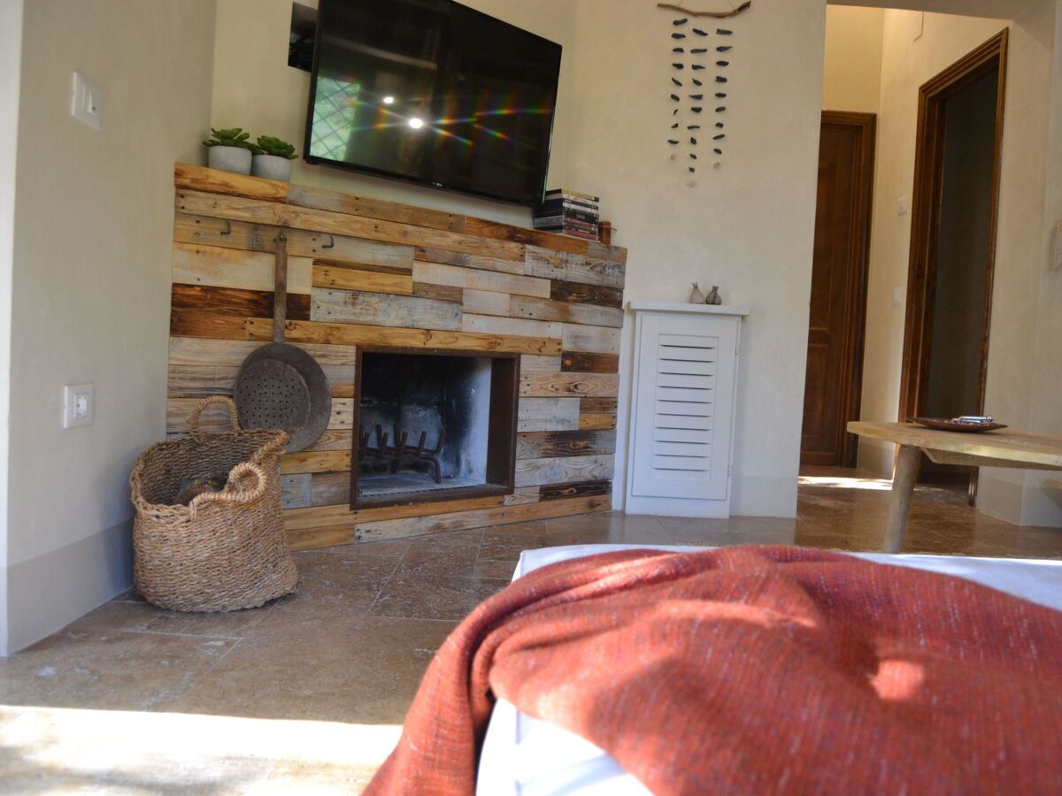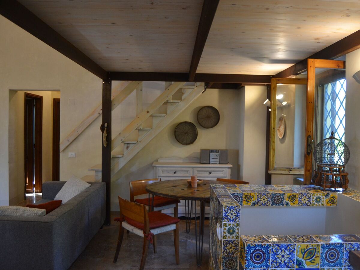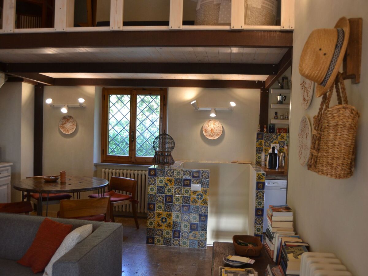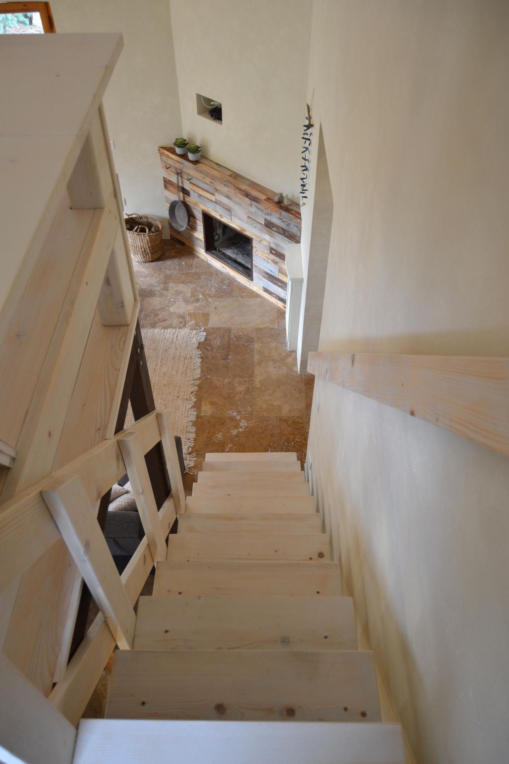 Inside, carefully renovated with quality materials, there is a bright living room with a characteristic wooden mezzanine, a stove, a fireplace, a complete open kitchen, a dining area, two bedrooms and a bathroom with shower.