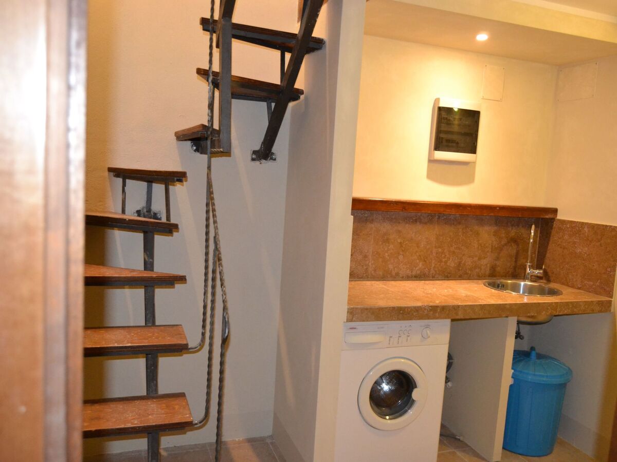 On the ground floor, accessed by a narrow and somewhat steep staircase, the laundry room and a recreation room with a large fireplace complete the house.