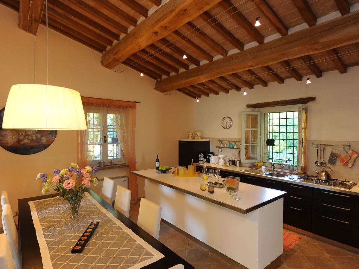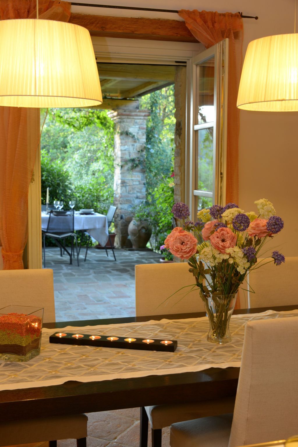 From the dining area with a table for ten people there is direct access to the pergola, also'esso comodamente attrezzato per pranzi estivi all'open.