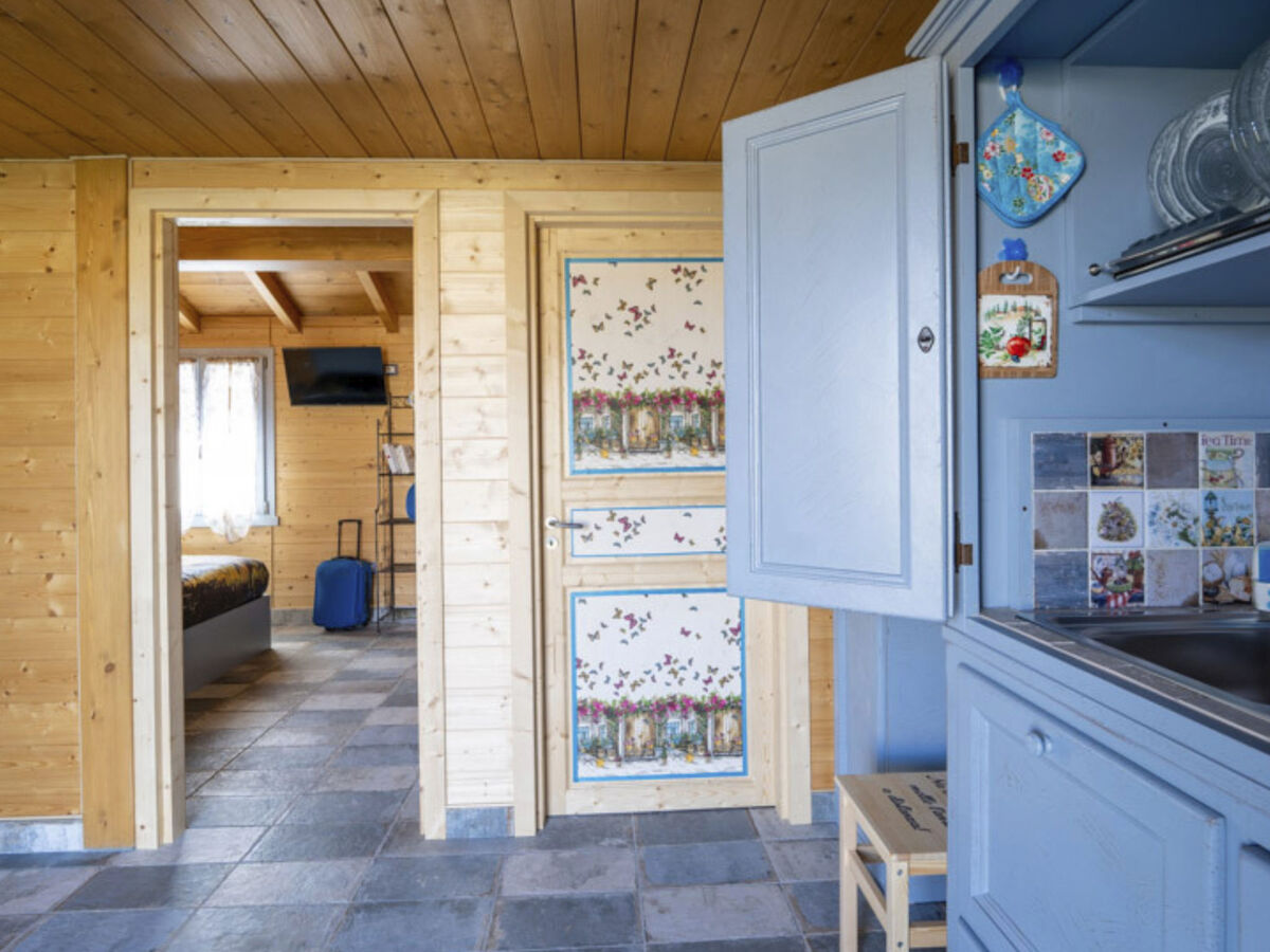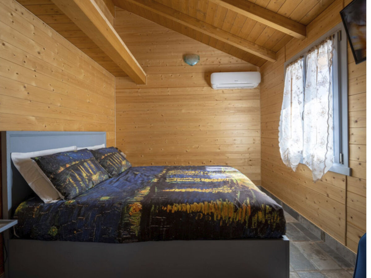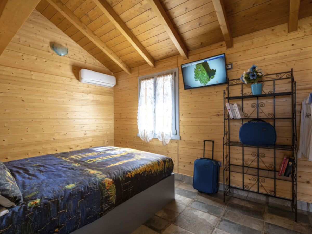 It can accommodate up to 5 people and has every comfort, with a double bedroom, a blue bathroom, a kitchen, a small loft and a cosy outdoor porch where it is possible, depending on the season, to have meals outdoors.