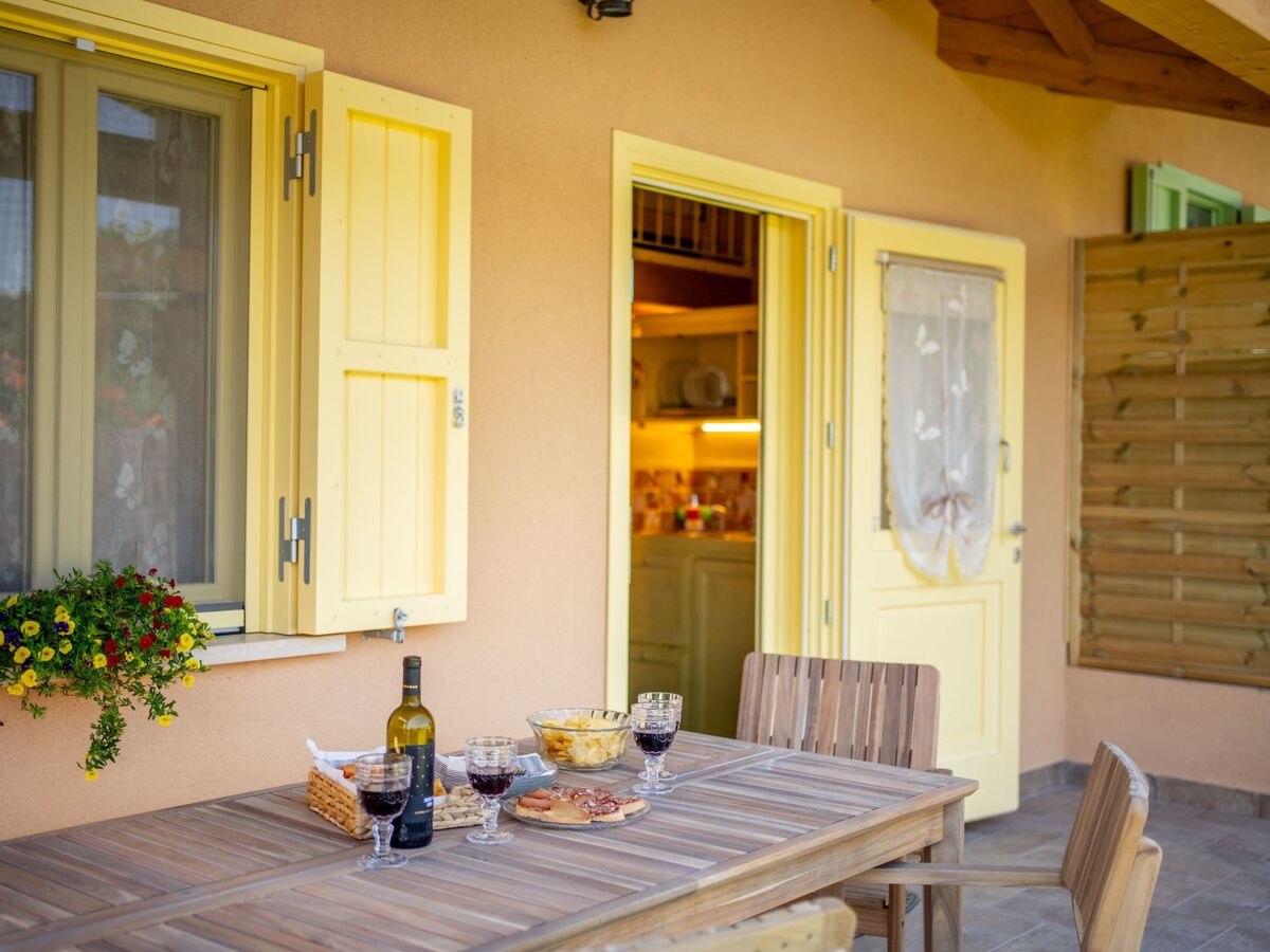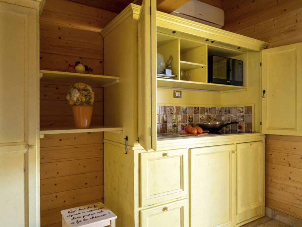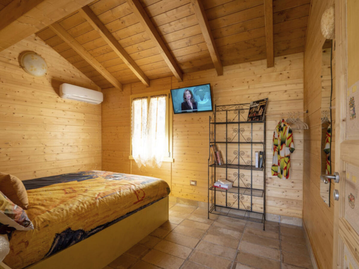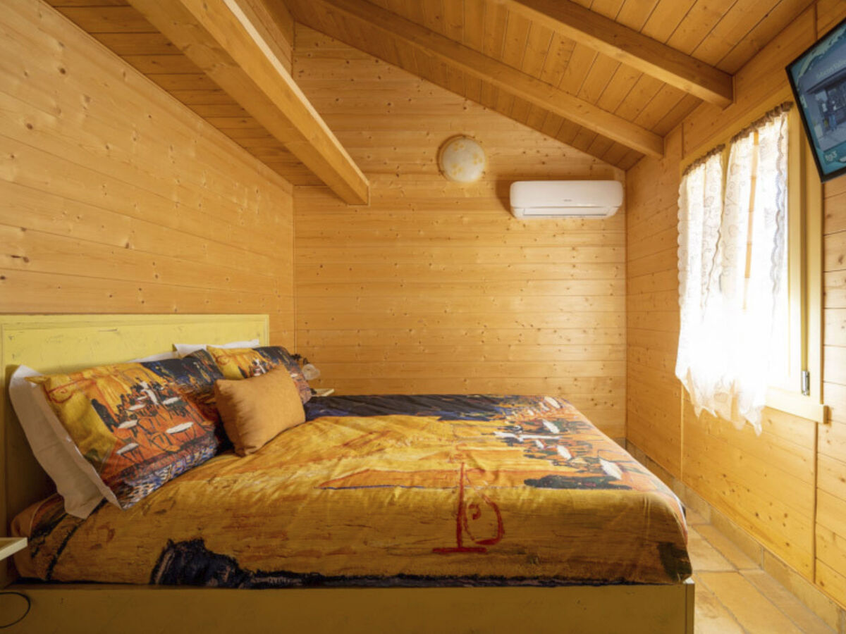 It can accommodate up to 5 people and has every comfort, with a double bedroom, a blue bathroom, a kitchen, a small loft and a cosy outdoor porch where it is possible, depending on the season, to have meals outdoors.