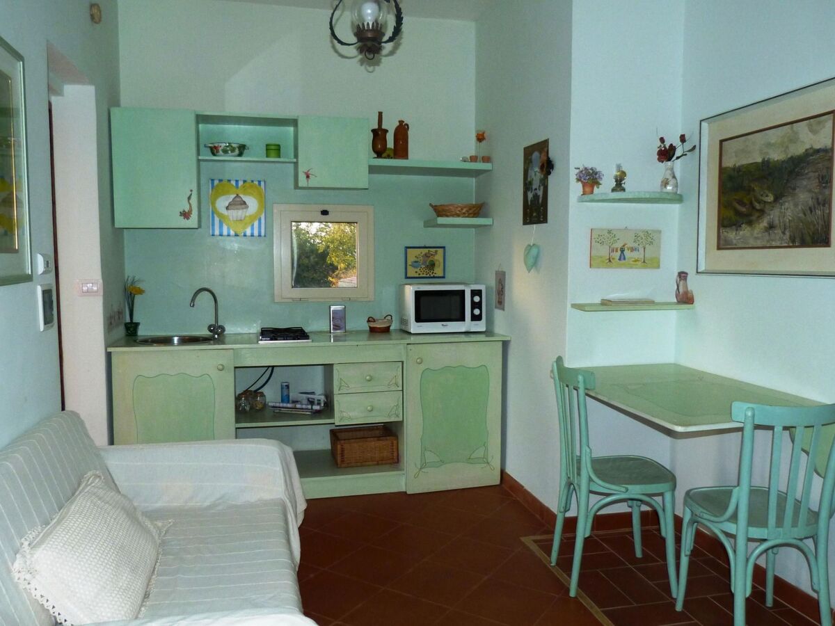 The Tramonto mini-apartment for two persons consists of a bedroom with a double bed, a bathroom with shower and a small kitchen-living room.
