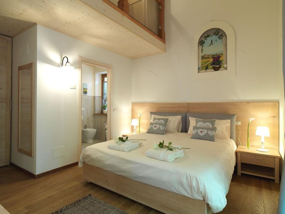 Bedroom 1: The Cantore Suite is located on the first floor and has an en-suite bathroom, high ceilings, and direct access to the sun terrace from the door window.