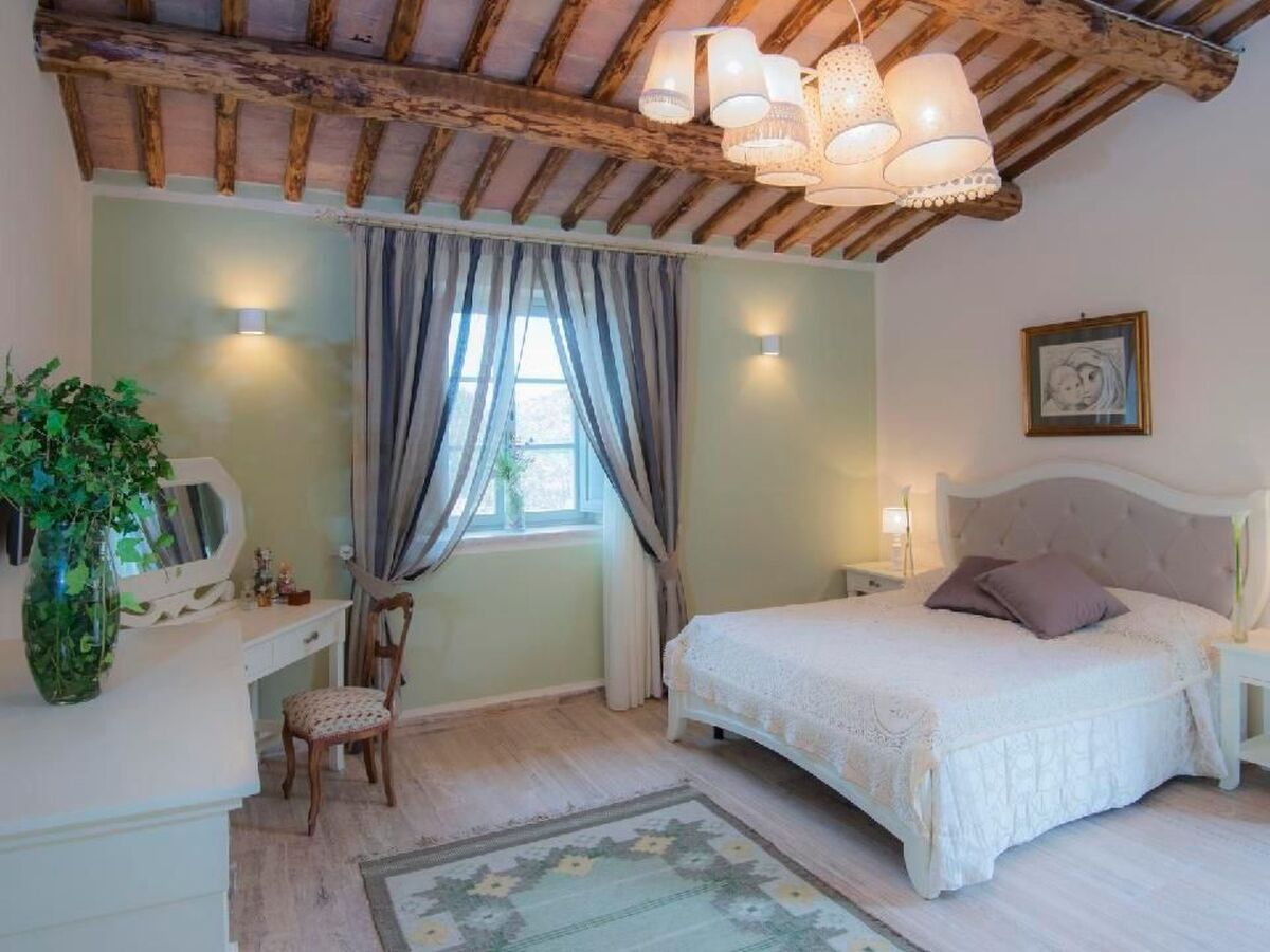 Amenities: - Fully equipped kitchen with dishwasher, espresso and cappuccino machine, kettle, blender, hob, oven and toaster - Tablecloths and porcelain plates made by local craftsmen - Bed, bathroom, pool and kitchen linen changed weekly - Large terrace with table, chairs and sunshade - Private panoramic swimming pool with Jacuzzi (9 x 4.5), shower, Large garden with vegetable garden and trout pond - Outdoor kitchen with wood-burning oven, barbecue and large veranda for lunches and dinners - Laundry room with washer/dryer, iron and ironing board - Electric gate and alarm system - Free Wi-Fi, large LED Smart TVs with Internet access, DVD player, MP3 player, USB port, Dolby Surround-Digital LED TV in each double room - Parking - Final cleaning Special services on request (extra charge): - Private chef for lunch and dinner - Cooking classes - Personalised wine tours - Historical and cultural guided tours - Shopping service on your arrival - Special wines - Beauty treatments and massages in the villa - Booking service for Fonteverde Spa - Personalised photography course - Personalised professional photo service/family portraits - Private chauffeur-driven car - Transfers to and from airport and train station - Horseback riding with picnic along the beautiful green paths - Extra cleaning, laundry and ironing service Short description Other: Non-smoking house Short description 1 Number of kitchens: 1 Living room 1 Other living room facilities: - Books and games - Large LED Smart TV with internet access, DVD player, MP3 player, USB port, Dolby Surround Bedroom 1 Other bedroom facilities: - Private bathroom with shower and WC - Digital LED TV - Hairdryer - Door to small terrace Bedroom 2 Other bedroom facilities: - Digital LED TV - Hairdryer Bedroom 3 Other bedroom facilities: - Digital LED TV - Hairdryer - Door to small terrace Bedroom 5 Other bedroom facilities: - Digital LED TV - hairdryer - door to small terrace Kitchen 1 Other kitchen facilities: Selection of wines (extra charge) Area Rental options: Car hire, boat hire Sports options in the area: Fishing, football pitch, golf course, hunting, mountain biking, horse riding area/opportunities, sailing, tennis, water skiingArea 1Excursion options - Customised wine tours - Historical and cultural guided toursDescription of location: Casale Galli is very conveniently located for visiting the many beautiful towns and villages in the regions of Lazio, Tuscany and Umbria.